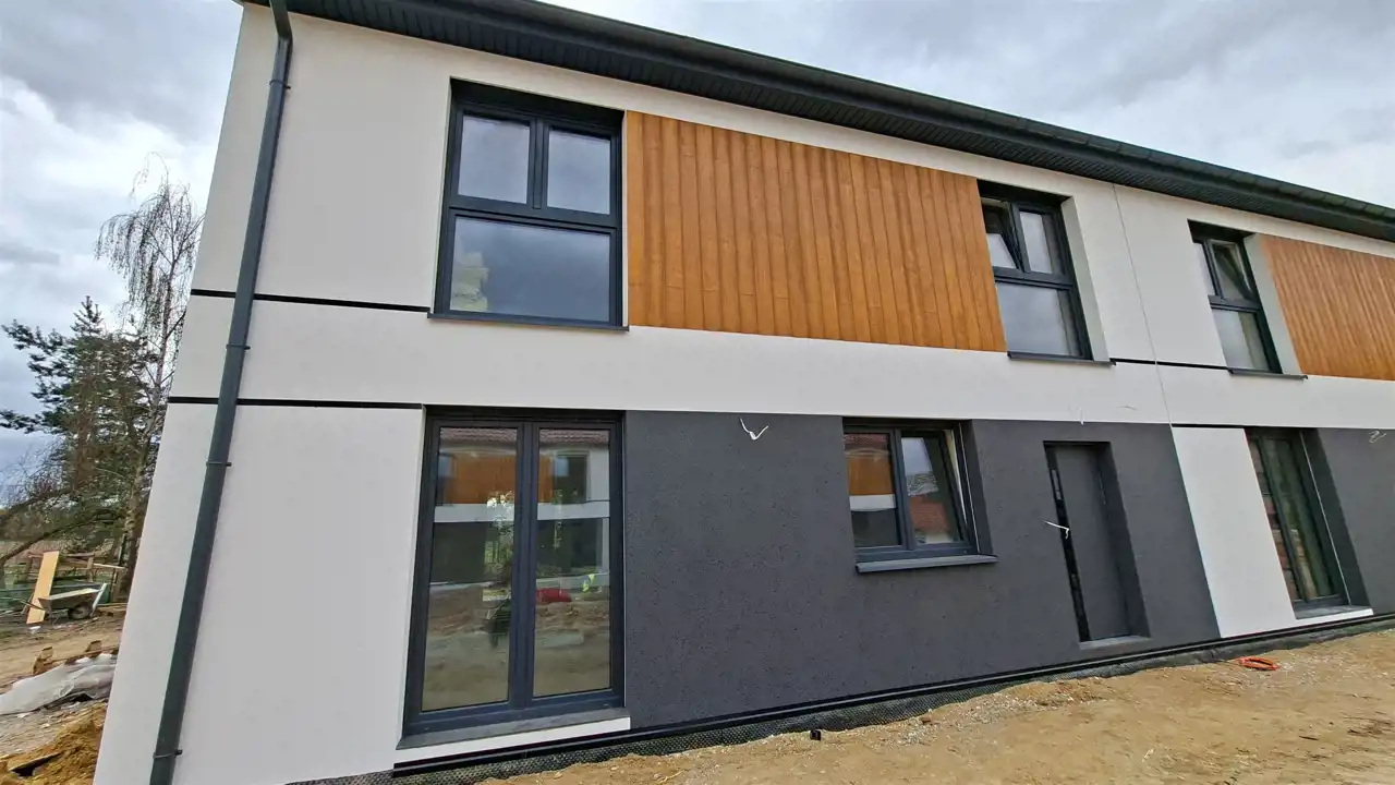 Na sprzedaż funkcjonalne domy w zabudowie bliźniaczej, zaprojektowane z myślą o wygodnym życiu rodzinnym. Każdy lokal posiada identyczny, przemyślany układ pomieszczeń (w odbiciu lustrzanym), który zapewnia komfort codziennego użytkowania oraz dużą swobodę aranżacji.