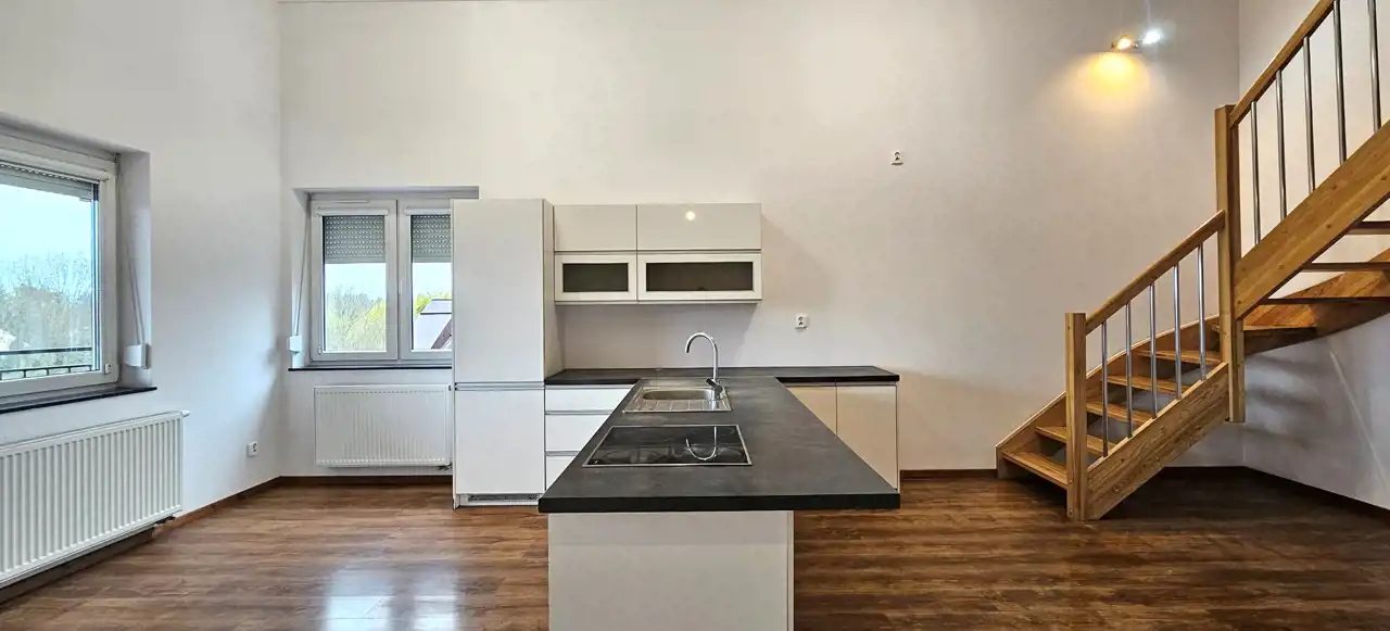 Komfortowe mieszkanie dwupoziomowe 122 m2: 5 pokoi, w tym jeden z aneksem kuchennym, łazienka z wc, przedpokój; balkon