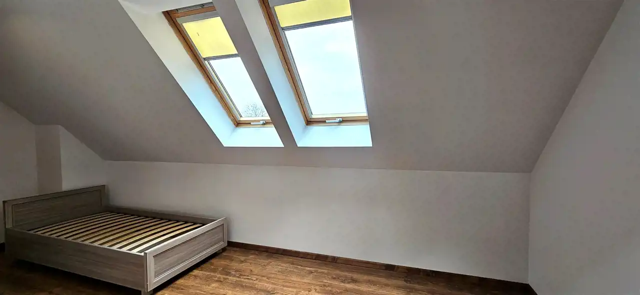 - stolarka okienna PCV z roletami zewnętrznymi oraz drewniana (okna połaciowe), drzwi antywłamaniowe;