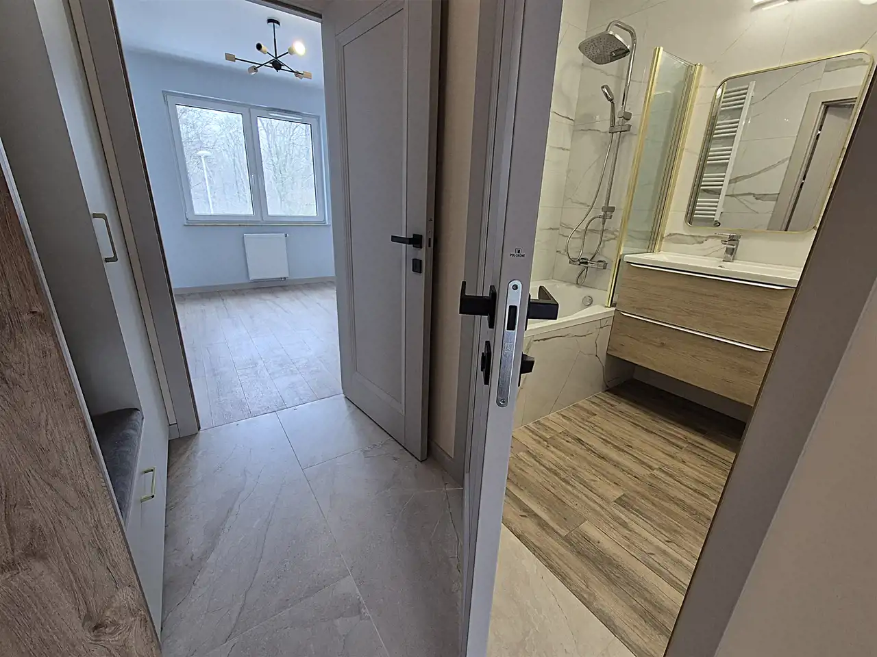 Mieszkanie wykończone z dbałością o każdy szczegół, w wysokim standardzie, drzwi wewnętrzne wysokiej klasy.