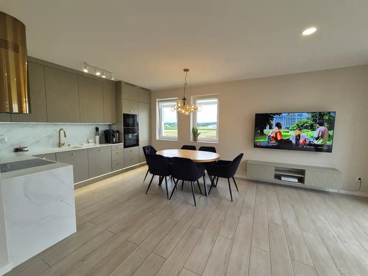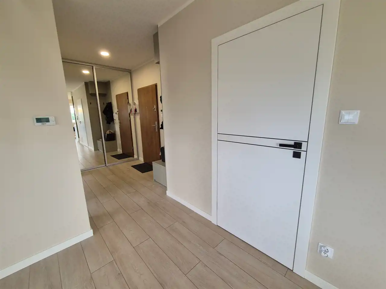 Aneks kuchenny z meblami w zabudowie wykonanymi na wymiar, wyposażony w pełny sprzęt AGD, przestrzenny salon z wyjściem na balkon, holl z szafą w zabudowie, osobny pokój, piękna łazienka razem z wc z miejscem prysznicowym.