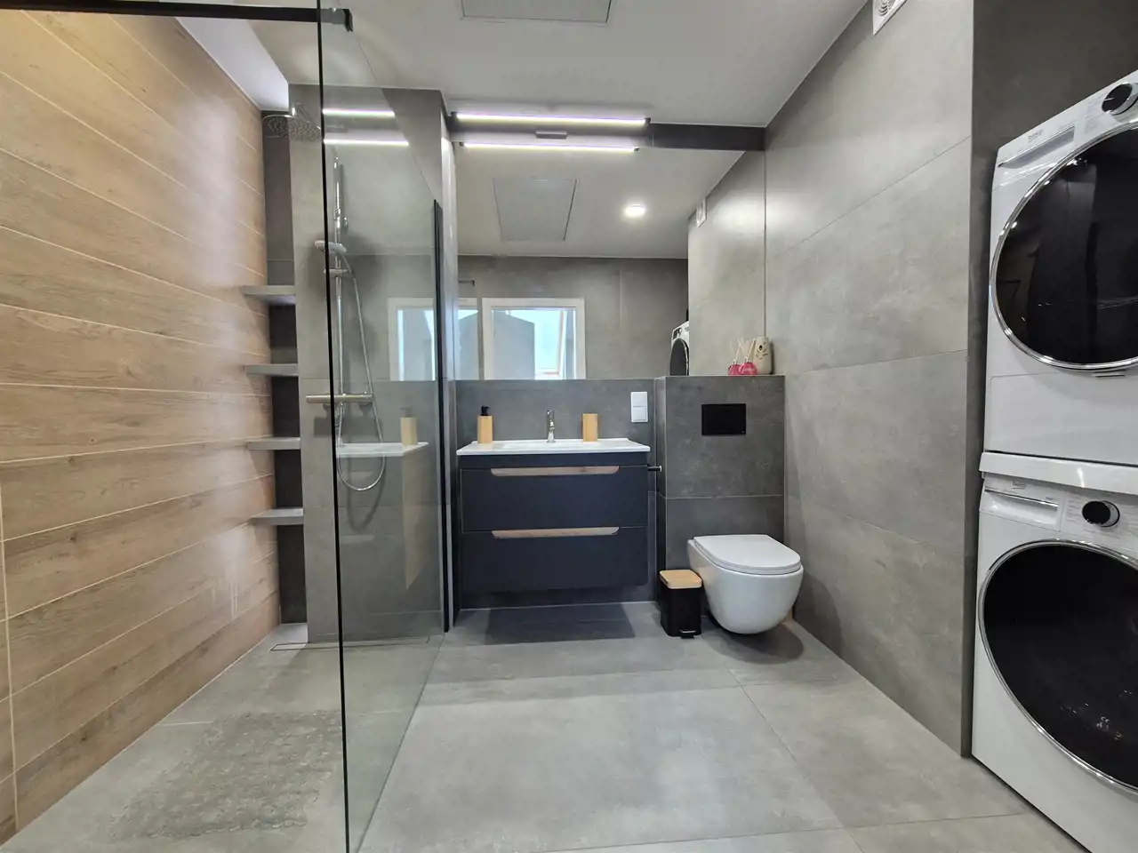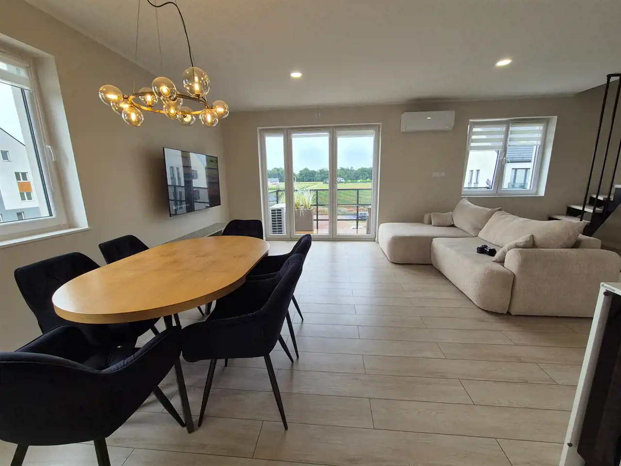 Całość pięknie zaaranżowana i wykończona w nowoczesnym stylu w stonowanej kolorystyce z materiałów wysokiej klasy z dbałością o każdy szczegół, panele winylowe, drzwi Porta, zamontowane 2 klimatyzacje na 2 poziomach.