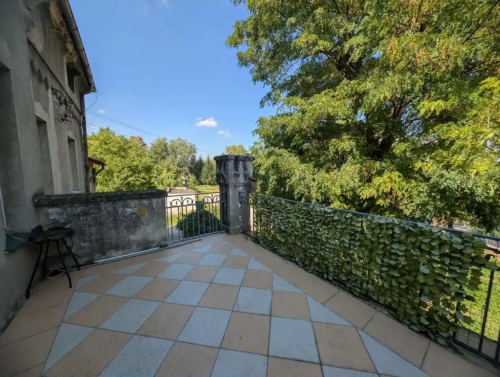 Do mieszkania przynależą dwa miejsca postojowe przy budynku oraz mały ogródek (ok 50 m²), a także udział w dużej działce obok pałacu.