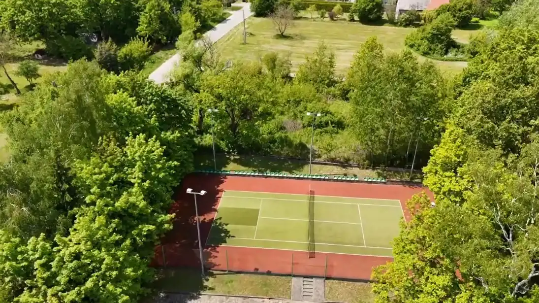 Nieruchomość stanowi działkę gruntu nr 1991/1 o pow. 1,1950 ha, położoną w Kazimierzu Dolnym przy ul. Słonecznej, objętą księgą wieczystą nr LU1P/00103583/7 prowadzoną w Wydziale Ksiąg Wieczystych Sądu Rejonowego w Puławach, zabudowana: murowanym budynkiem z poddaszem użytkowym o powierzchni zabudowy 53,43 m², wybudowanym w 1989 roku, wykorzystywanym na cele mieszkalne przez pracowników hotelu „Zajazd Piastowski”, jest to budynek zaadoptowany z dawnej portierni; na parterze znajdują się dwa pokoje, wc i korytarz, na poddaszu znajdują się trzy sypialnie, salon i łazienka; wg. rejestru budynków - budynek zaklasyfikowany został do kategorii pozostałych budynków niemieszkalnych, kortem tenisowym o wymiarach 34 m. x 18 m. z polem do gry w debla o wymiarach 24 m. x 11 m., ogrodzonym siatką, wyposażonym w oświetlenie i ławki, wybudowanym w 2007 roku, z podłożem betonowym i nawierzchnią wykończoną wykładziną, parkingiem utwardzonym płytami betonowymi i kostką o powierzchni utwardzenia ok 1.500 m². Dostawa nieruchomości wraz z usytuowanymi na nich budynkami, odbywa się z zastosowaniem zwolnienia z podatku od towarów i usług na podstawie art. 43 ust. 1 pkt 10 ustawy z 11.03.2004 r. o podatku od towarów i usług. (VAT wg stawki „zw")