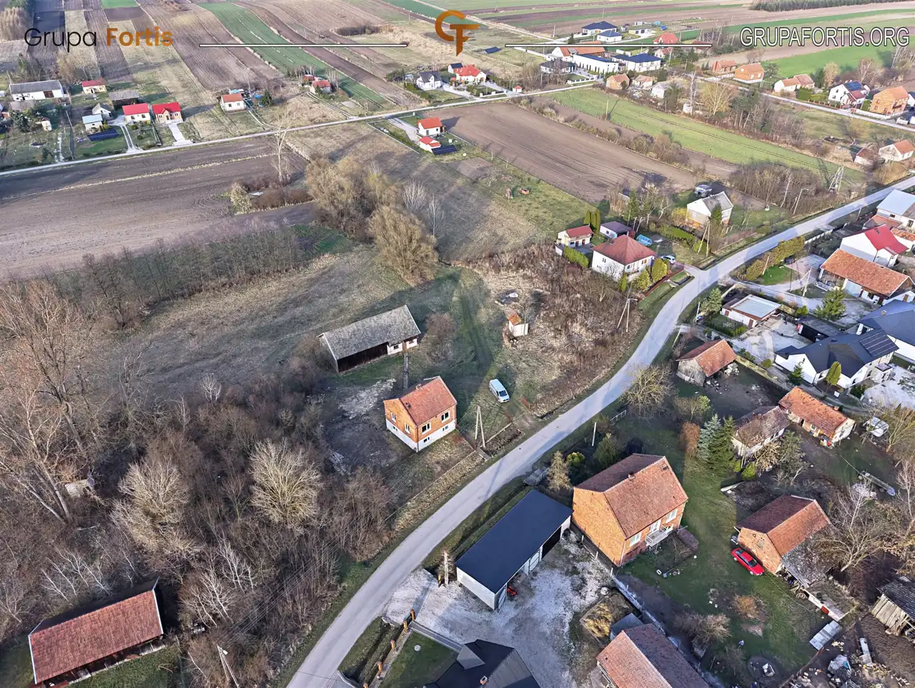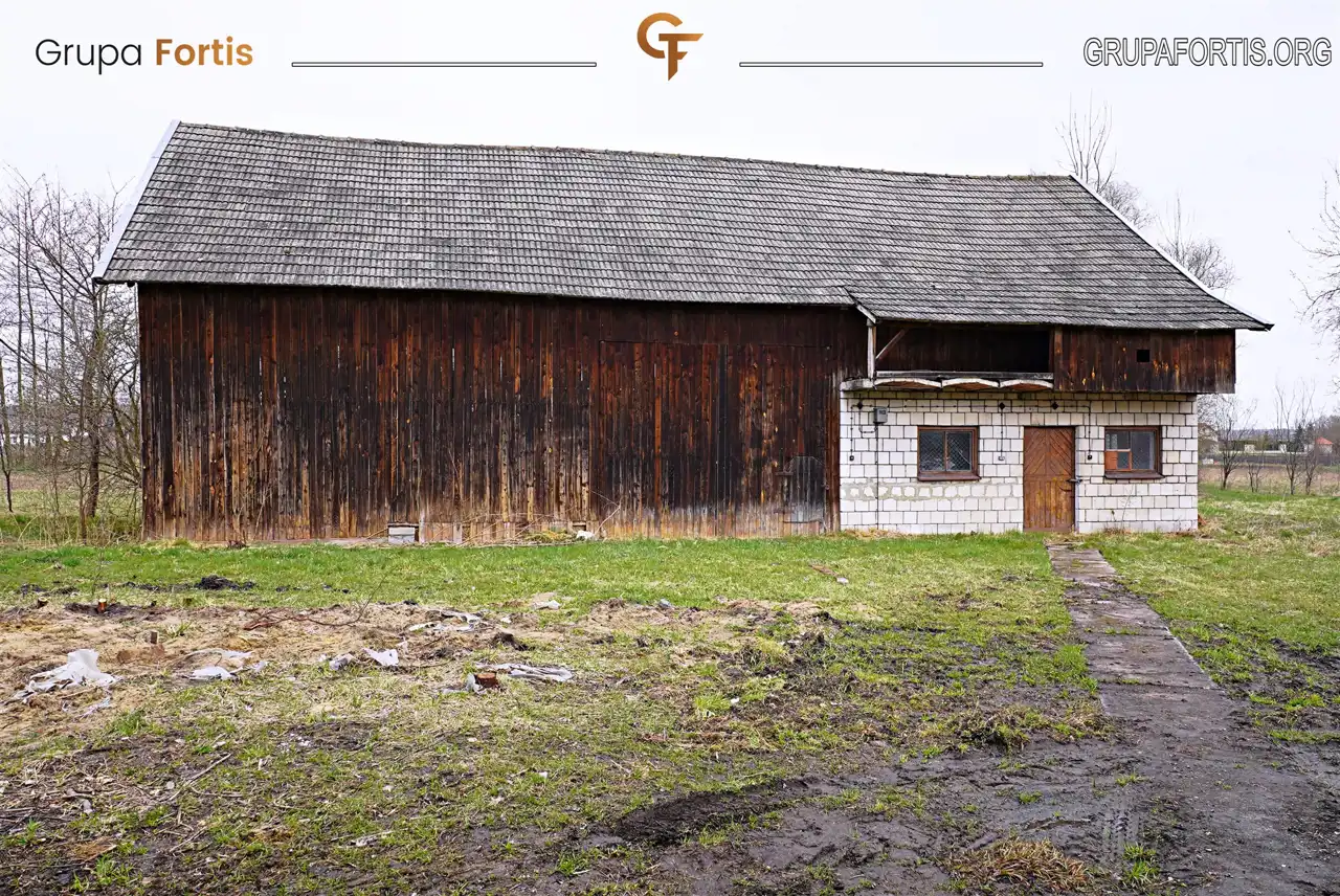 Na działce znajduje się budynek gospodarczy o wymiarach około 17 m x 9 m (stodoła oraz murowany chlew) z doprowadzonym prądem