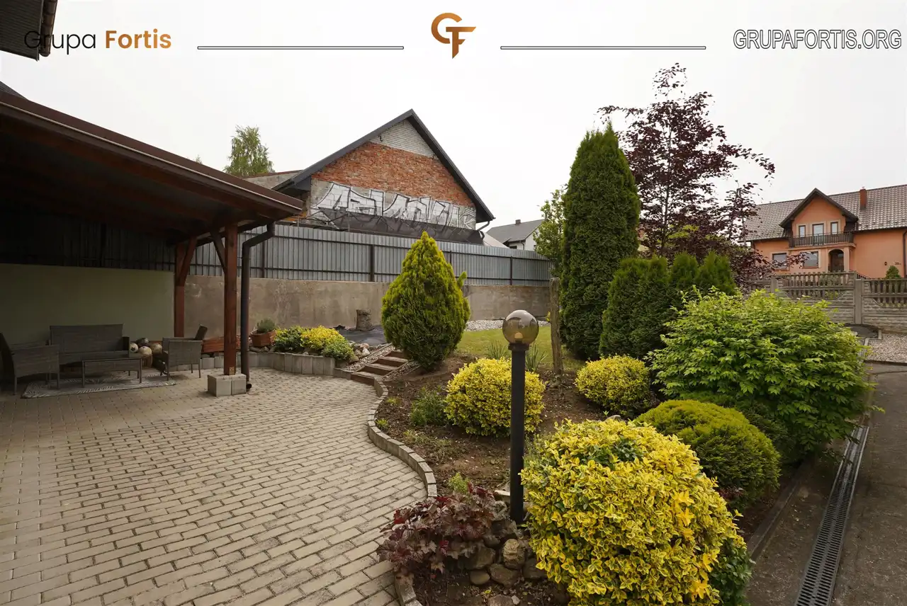 Dom posiada dwa niezależne wejścia, co umożliwia wydzielenie osobnych stref – np. biura, gabinetu, części usługowej.