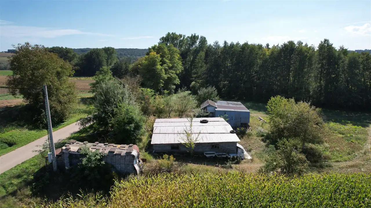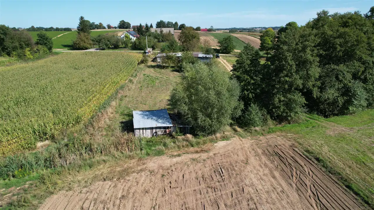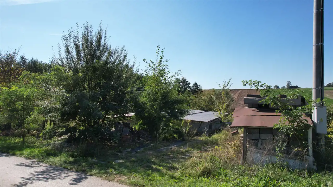 Część wschodnia działki częściowo zabudowana - budynkami gospodarczymi w złym stanie technicznym (garaż, gołębnik i magazyn). Dodatkowo na działce znajduje się budynek - przechowalnia warzyw wraz z częścią mieszkalną, wzniesiony na podstawie decyzji o ustaleniu warunków zabudowy i zagospodarowania terenu. Budynek budowany w technologii tradycyjnej murowanej z pustaków, posiada jedną kondygnację, pokryty blachą, posiada przyłącze do sieci energetycznej i sieci wodociągowej. Budowa niedokończona, budynek nie oddany do użytkowania, powierzchnia użytkowa ok. 84 m2.