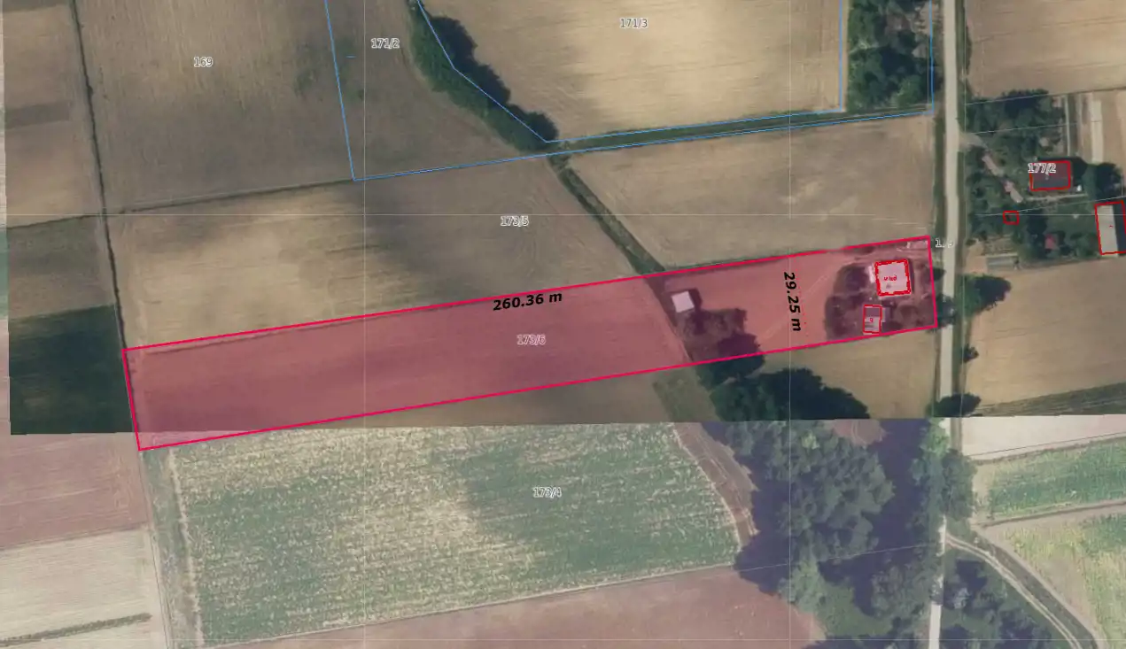 - Działka częściowo zagospodarowana, lekko nachylona, prostokąt
