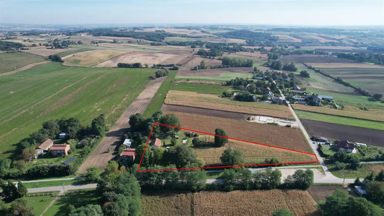 Sieradzice gmina Kazimierza Wielka. Działka o pow. 8300 m2 zabudowana dwoma domami mieszkalnymi. Przedmiotowa działka leży w terenie nieobjętym miejscowym planem zagospodarowania przestrzennego. Działka oddalona ok. 11 km od Proszowic, ok. 10 km od Kazimierzy Wielkiej. Działka płaska zabudowana dwoma domami z lat 50. ok. 100 m2 i lat 80. ok. 200 m2 z bezpośrednim dostępem do drogi publicznej o niewielkim, lokalnym ruchu oraz nowo wybudowanej trasy rowerowej. Przy działce usytuowana jest jedno z dwóch miejsc postojowych ścieżki przyrodniczo-rowerowej.