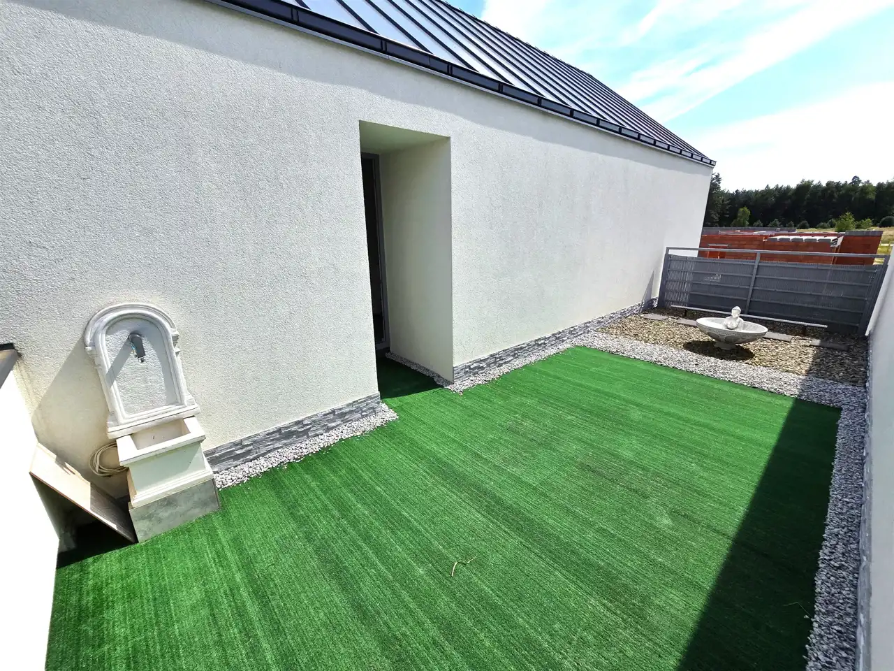 Polecam na sprzedaż wyjątkowy dom z garażem w zabudowie szeregowej o powierzchni 124 m² z 2020 r. w bliskim sąsiedztwie lasu.