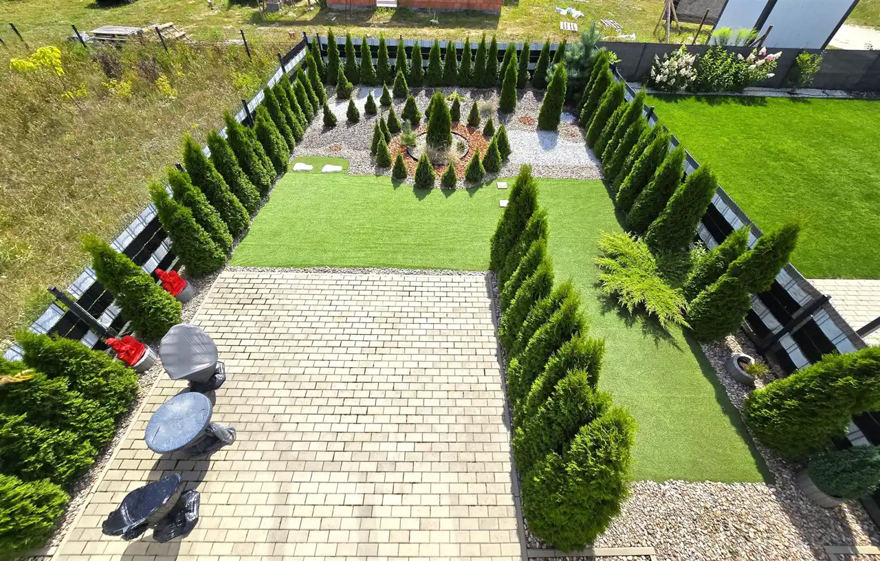 Teren ogrodzony z automatyczną bramą wjazdową sterowaną na pilota.