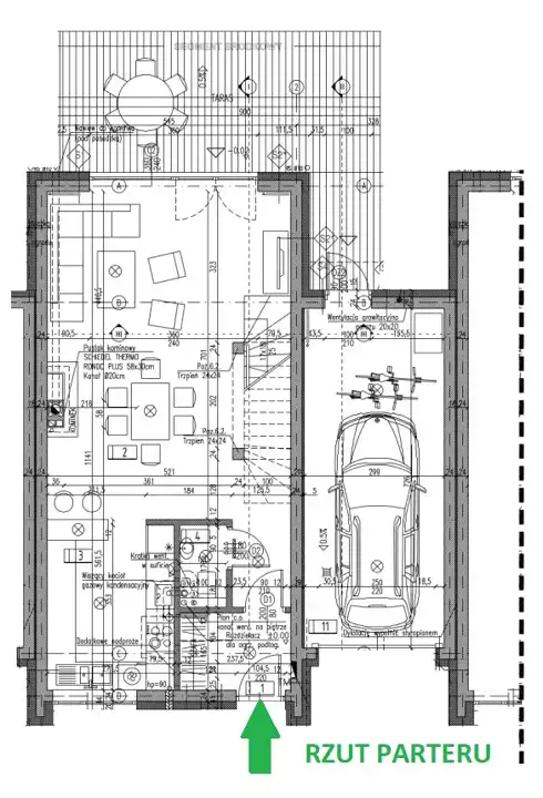 - garaż blisko 22 m² z automatyczną bramą segmentową zdalnie sterowaną.