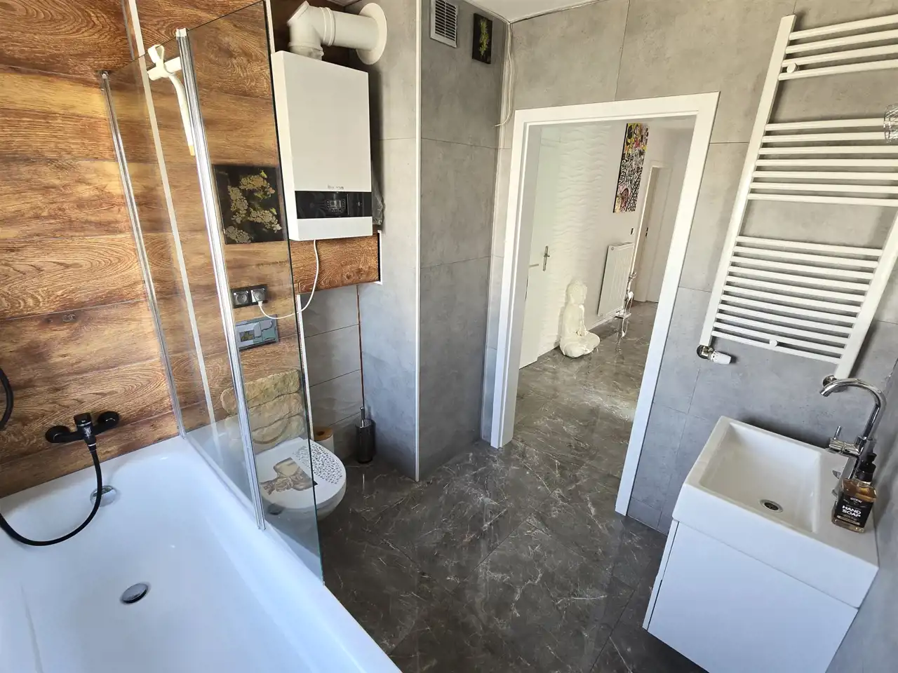 Ogrzewanie gazowe piecem dwufunkcyjnym, okna trzyszybowe z roletami zewnętrznymi.