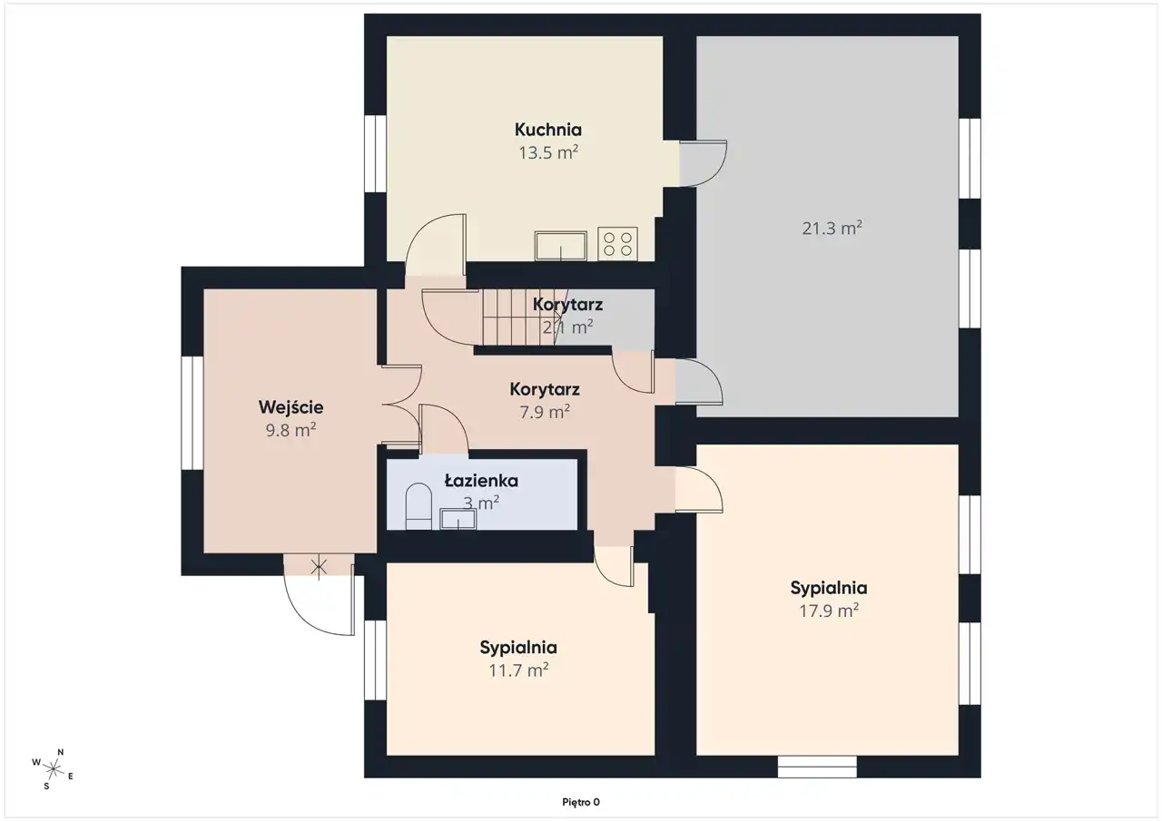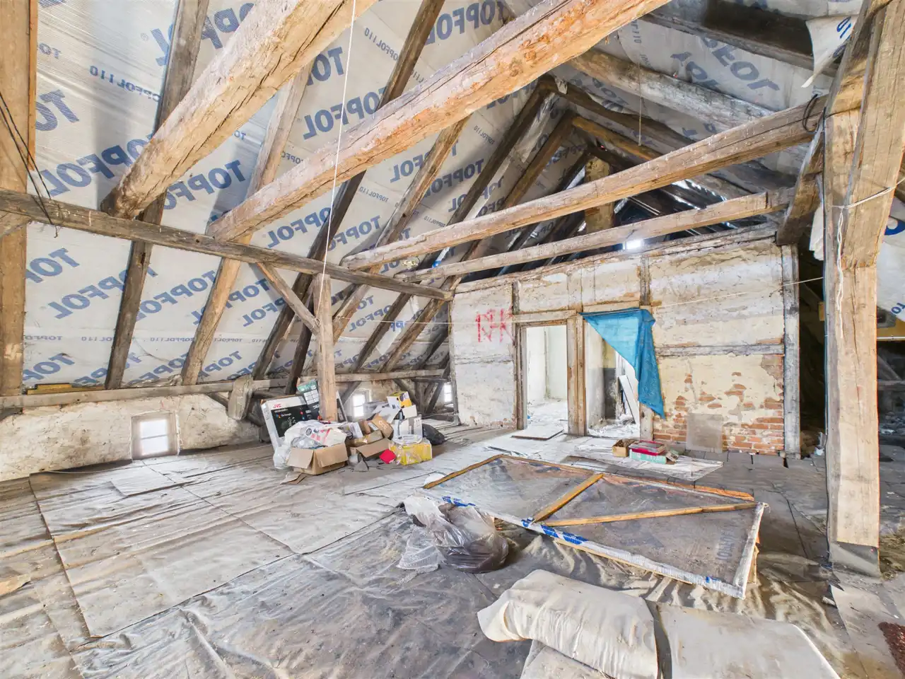 Dom murowany i zamieszkały, jednak wymaga remontu, co daje nowemu właścicielowi możliwość dostosowania wnętrza do własnych potrzeb i gustu. Powierzchnia użytkowa wynosi około 87,5 m² i obejmuje trzy pokoje, kuchnię oraz łazienkę. Dodatkowym atutem jest poddasze o powierzchni około 60 m², które można zaadaptować na kolejne trzy pokoje lub przestrzeń rekreacyjną.