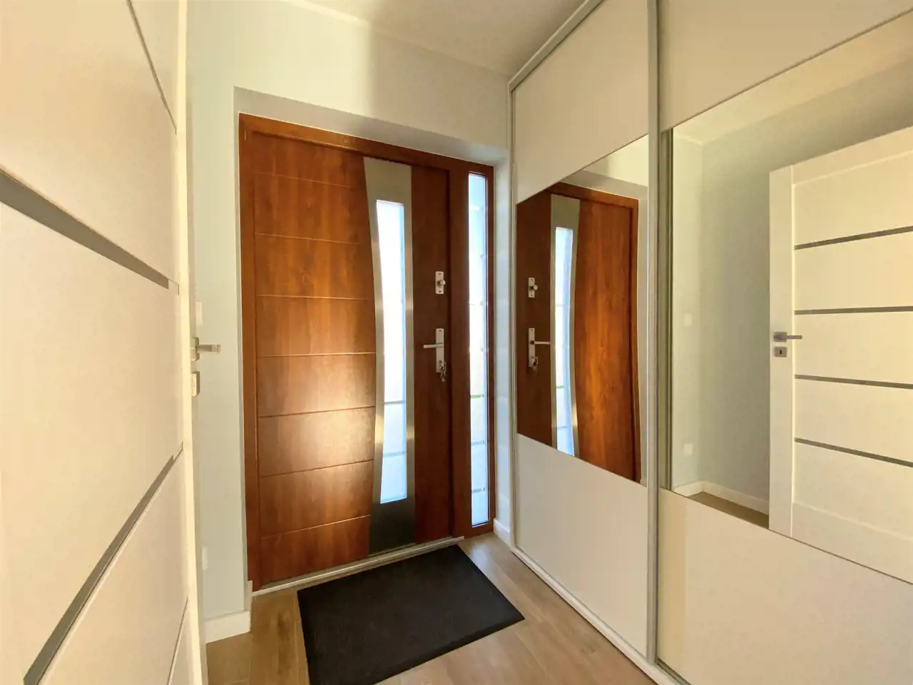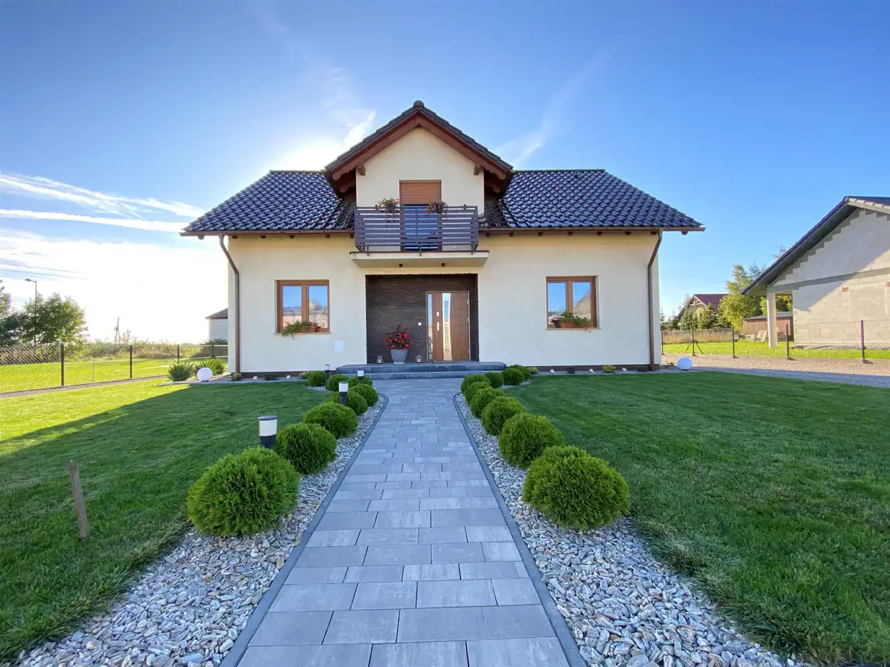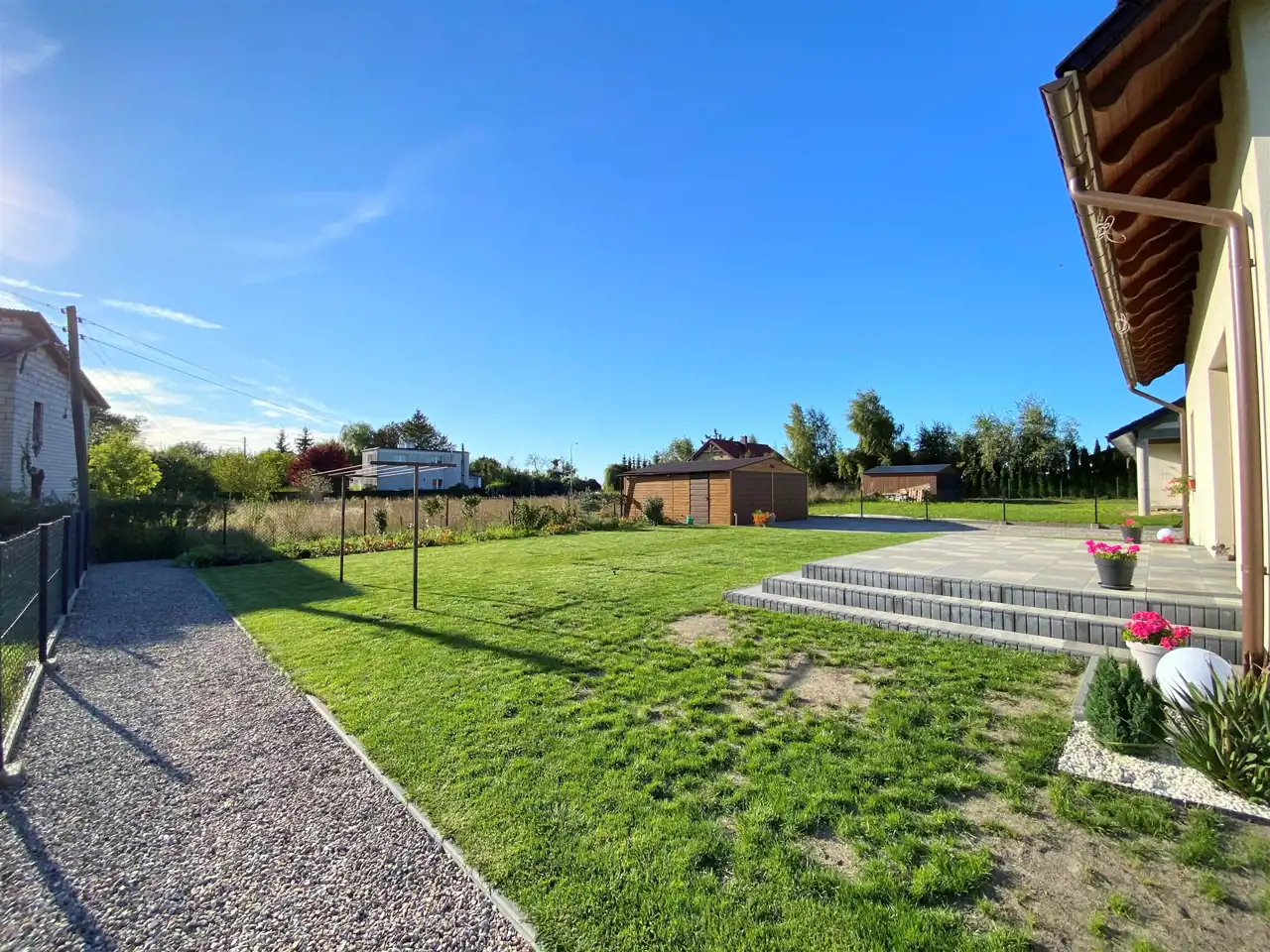 Dom znajduje się na działce o powierzchni 904 m2. Oprócz domu, na działce znajdziemy wolnostojący garaż o powierzchni ok 34 m2. Podjazd utwardzony płytami ażurowymi oraz kamieniem. Za domem przestronny taras. Wkoło przepiękny, gęsty trawnik oraz pojedyncze nasadzenia.