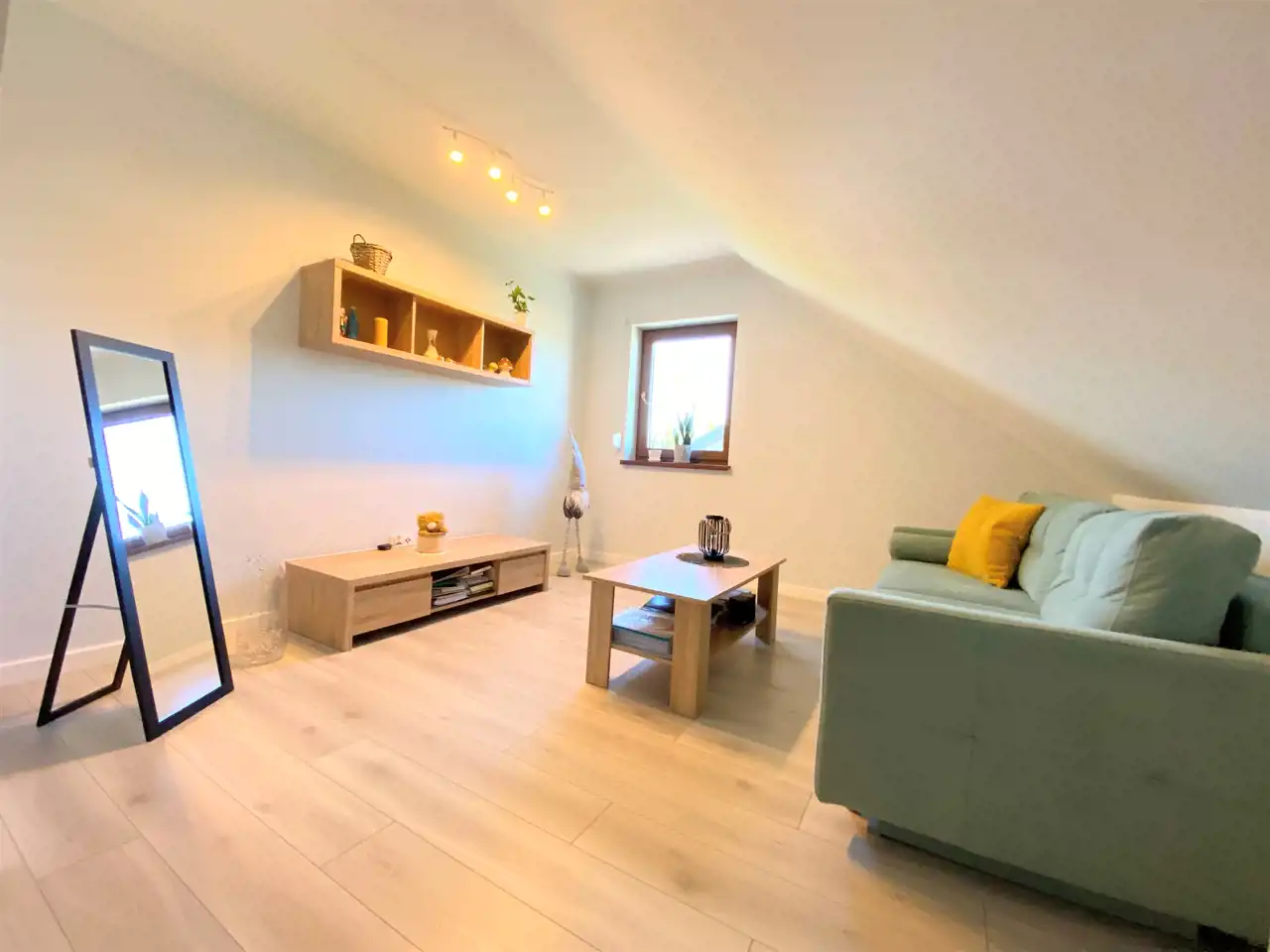 - otwarty salon z kuchnią, spiżarnią o łącznej powierzchni ok 50 m2. - jeden pokój 14 m2