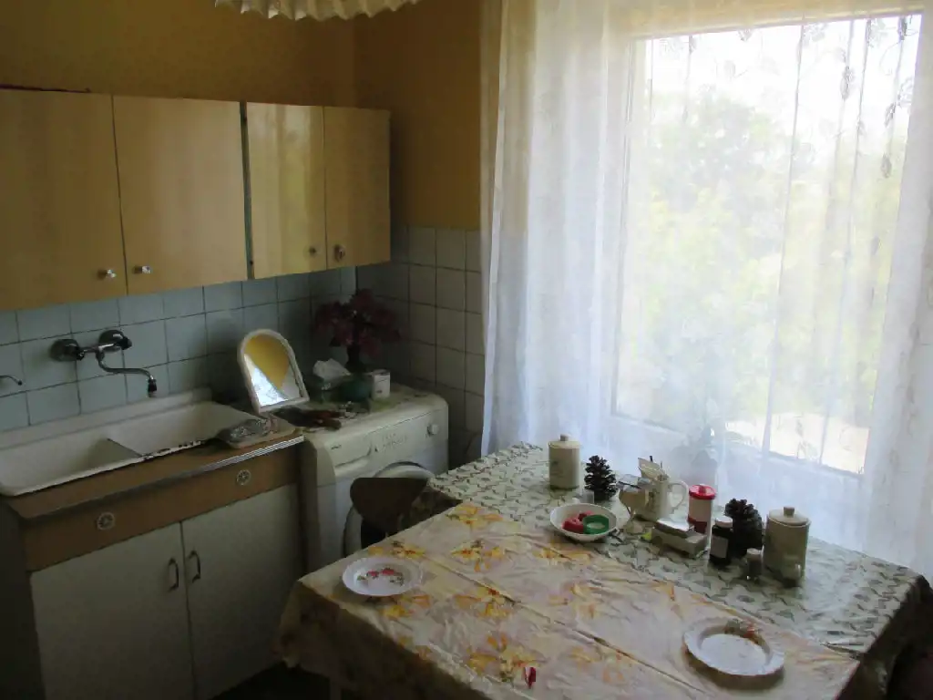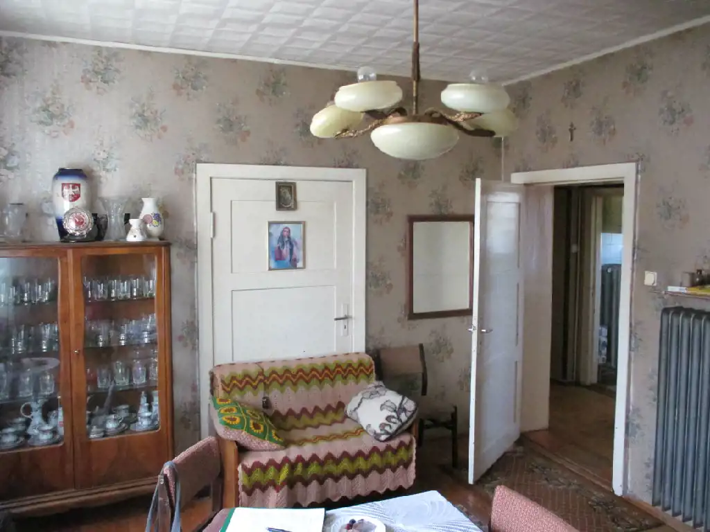 Na mieszkanie o powierzchni 66,60 m2 składają się dwa pokoje (19,70 i 19,11 m2) tworzące amfiladę ale jednocześnie należy zwrócić uwagę na fakt iż każdy z pokoi posiada osobne wyjście na przedpokój. Podłoga pokoi wykonana jest z desek sosnowych wystarczy prze-cyklinować, na ścianach i sufitach tapeta, okna wymienione na PCV z wystawą od południowo-wschodniej strony. Duża 10,30 m2 ustawna kuchnia w której również wymieniono okno na PCV z wystawa od zachodu tak samo jak łazienka wyposażona w wannę i okno stare drewniane. Mieszkanie posiada również duży ponad 7 m2 przedpokój, który z racji swojego układu można zabudować i stworzyć w nim zarówno garderobę jak i dużą przesuwną szafę typu KOMANDOR, z wspomnianego przedpokoju jest wejście na werandę, która obecnie służy jako pomieszczenie spiżarki ale z racji wyposażenia jej w dwa okna zarówno od południa jak i od wschodu można pokusić się o zmianę przeznaczenia tego pomieszczenia na niewielki gabinet. Do tej nieruchomości należą również wyodrębnione pomieszczenia piwniczne o łącznym metrażu 24,62 m2, w jednym z tych pomieszczeń jest usadowiony piec na opał stały typu SKI wymieniony w 2009 r. Na posesji znajduje się również murowany garaż na jeden samochód (11 m2). Do tej nieruchomości przypisane jest również pomieszczenie gospodarcze o pow. 15 m2 oraz posiadająca pełną własność działka o pow.535 m2. W części ogrodowej oprócz drzew owocowych, iglaków, kwiatów i warzywniaka znajduje się pomieszczenie na narzędzia ogrodowe.