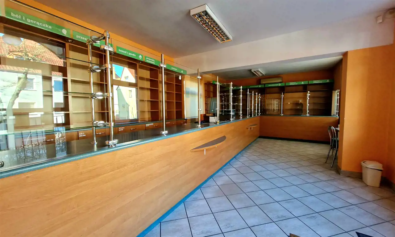 Nieruchomość pełniła funkcję apteki, dzięki czemu jej układ jest idealnie przystosowany do działalności medycznej. Sala sprzedaży o powierzchni 39 m² stanowi centralną część lokalu, a dodatkowo do dyspozycji pozostają liczne pomieszczenia zaplecza, wymagane przy prowadzeniu apteki. Łączna powierzchnia użytkowa lokalu wynosi 119 m².