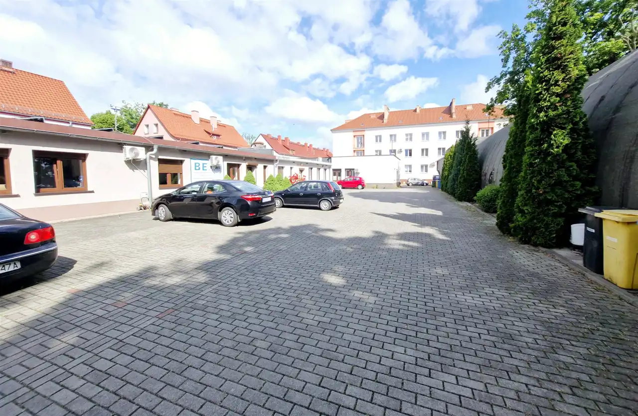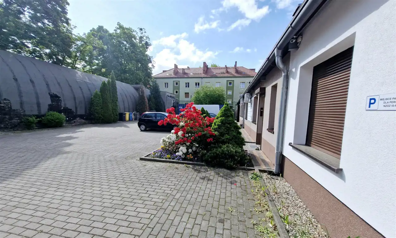 Przed budynkiem znajduje się dogodna strefa parkowania, umożliwiająca swobodny dostęp zarówno pracownikom, jak i klientom. Wjazd na posesję odbywa się przez automatyczną bramę wjazdową.