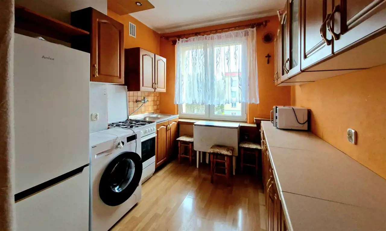 Do mieszkania przynależy również piwnica. Klatka schodowa została wyremontowana, a pod budynkiem dostępne są wygodne miejsca parkingowe. Dodatkowym atutem jest bliskość przystanku autobusowego.