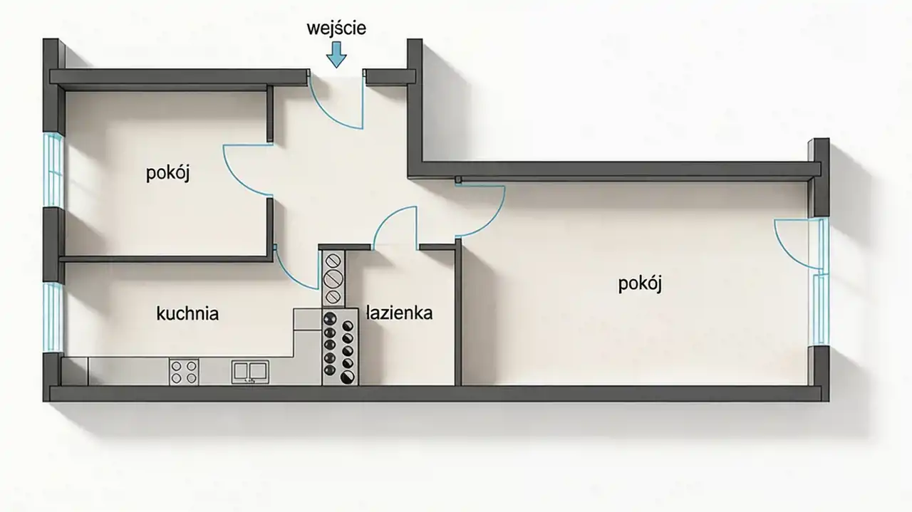 - Charakterystyka mieszkania 48 m2, 2 pokoje