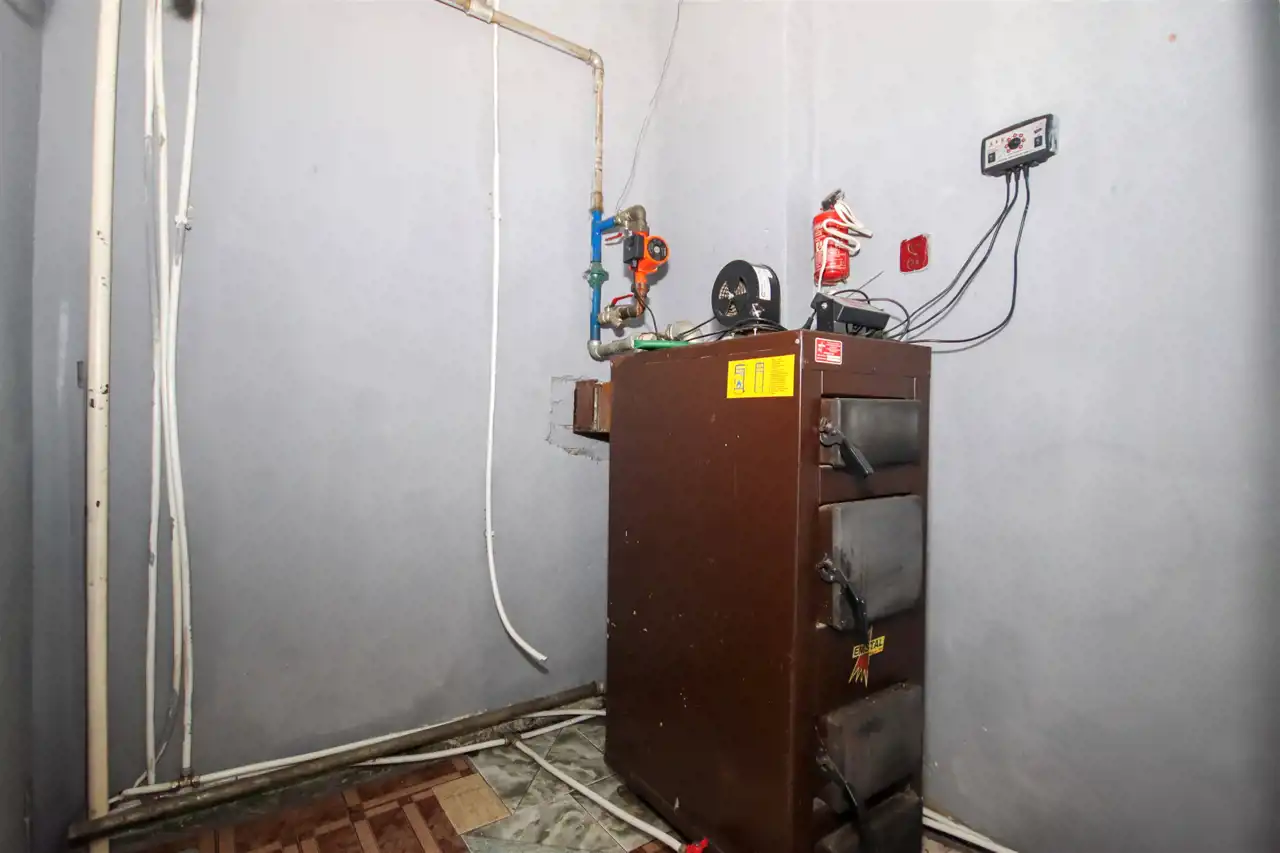 - podstawa centralnego ogrzewania i ciepłej wody na dwóch kondygnacjach – piec na paliwo stałe zlokalizowany na parterze,