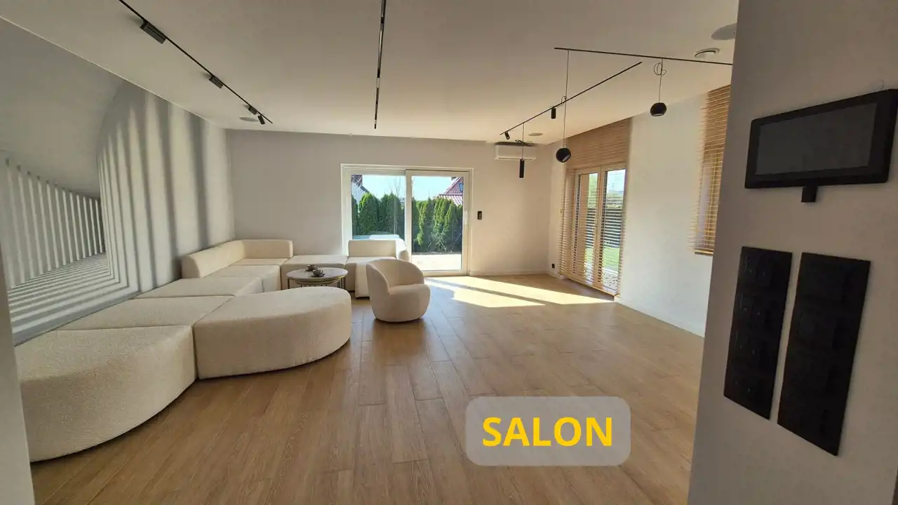 - duży, ustawny salon z bezpośrednim wyjściem na taras i ogród,
