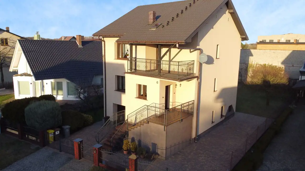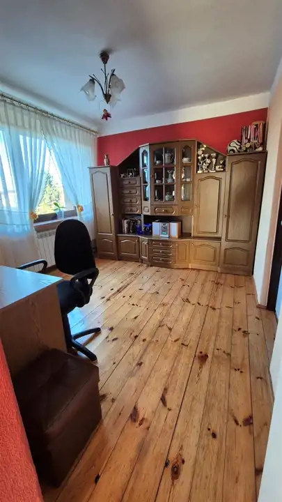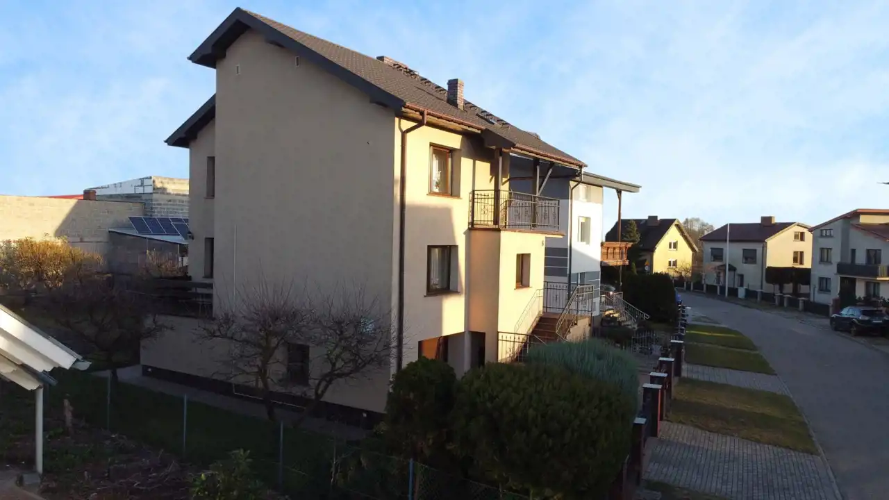Dom został wybudowany w latach 80tych. Jest po remoncie i utrzymany w bardzo dobrym stanie technicznym. Dom jest zamieszkany przez właściciela. Budynek składa się z trzech kondygnacji o łącznej pow. ok. 173 m2. Powierzchnia użytkowa to ok 158 m2.