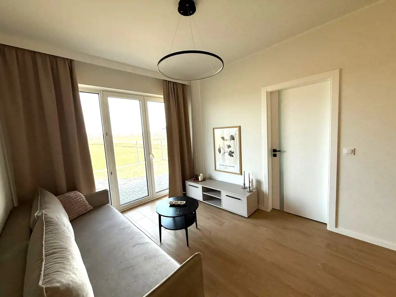 KWADRAT prezentuje na sprzedaż nowe, wygodne mieszkanie położone w Hanulinie (Zosin). Lokal położony jest na parterze domu w zabudowie bliźniaczej. Powierzchnia całkowita 51,70 m2. Oferowane mieszkanie posiada duży, ustawny salon wraz aneksem kuchennym i bezpośrednim wyjściem na ogród, 2 sypialnie oraz łazienkę. Do mieszkania przynależne są dwa miejsca parkingowe.