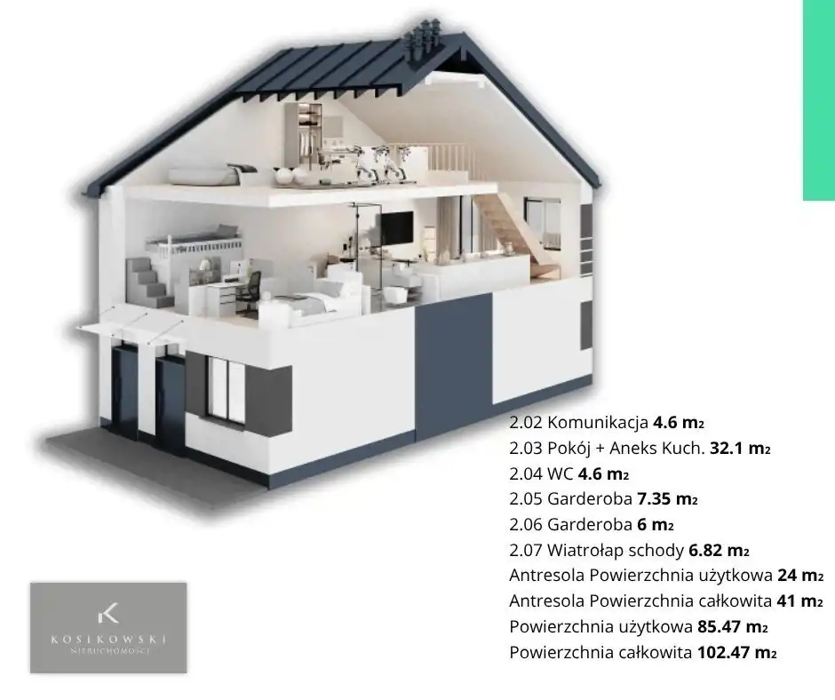 PIĘTRO Z ANTRESOLĄ – 102,01 m² – 450.000,00 zł
