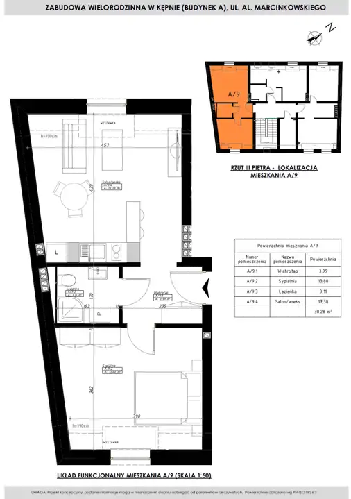 - Charakterystyka mieszkania 38.28 m2, 1 pokój