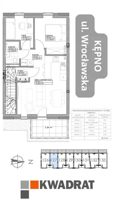 - Charakterystyka mieszkania 43.14 m2, 3 pokoje