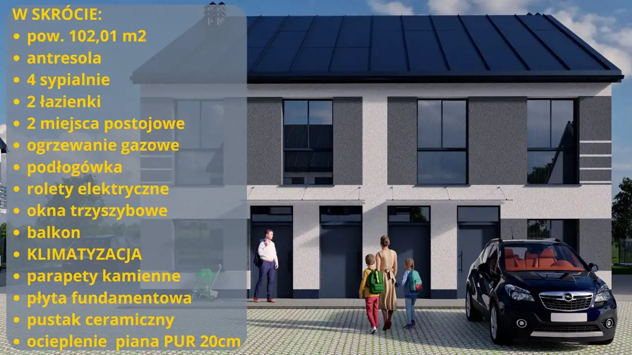 KWADRAT prezentuje na sprzedaż nowe, wygodne mieszkanie położone w Hanulinie (Zosin). Lokal położony jest na piętrze domu w zabudowie bliźniaczej. Powierzchnia całkowita 102,01m2. Oferowane mieszkanie posiada duży, ustawny salon wraz aneksem kuchennym i bezpośrednim wyjściem na balkon, 2 sypialnie, łazienkę oraz dużą ANTRESOLĘ. Do mieszkania przynależne są dwa miejsca parkingowe.