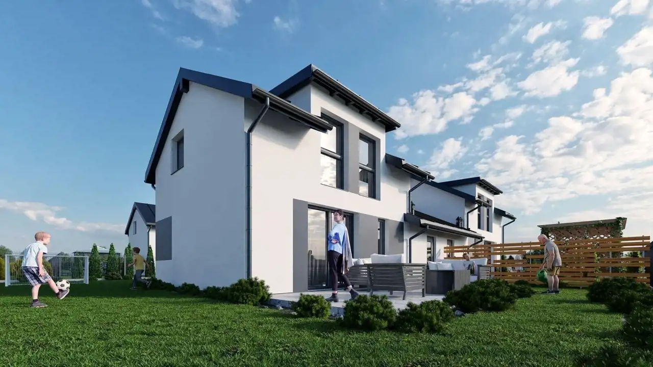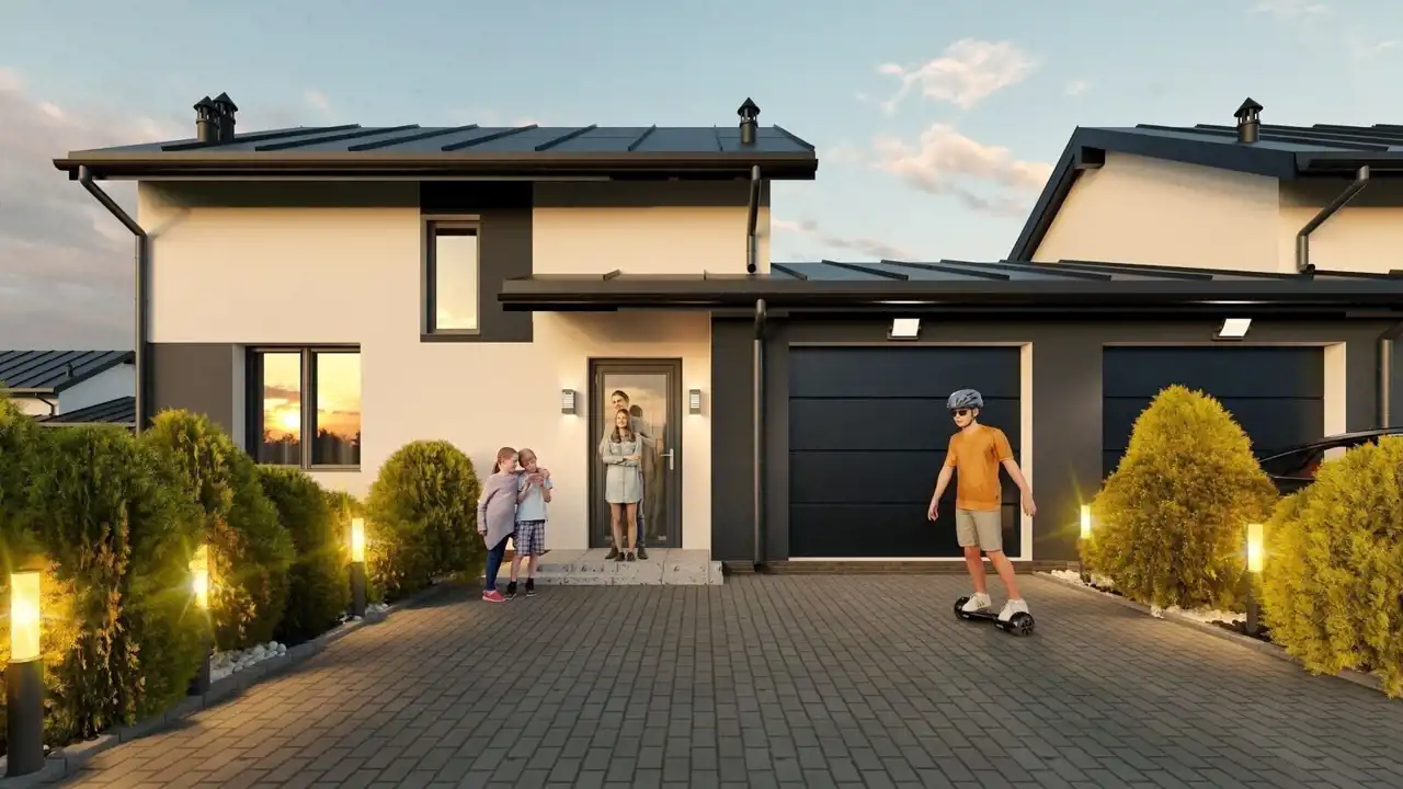 Bez dodatkowych kosztów – w cenie otrzymujesz standard deweloperski, prywatny ogród, garaż, miejsce parkingowe i nowoczesne rozwiązania.