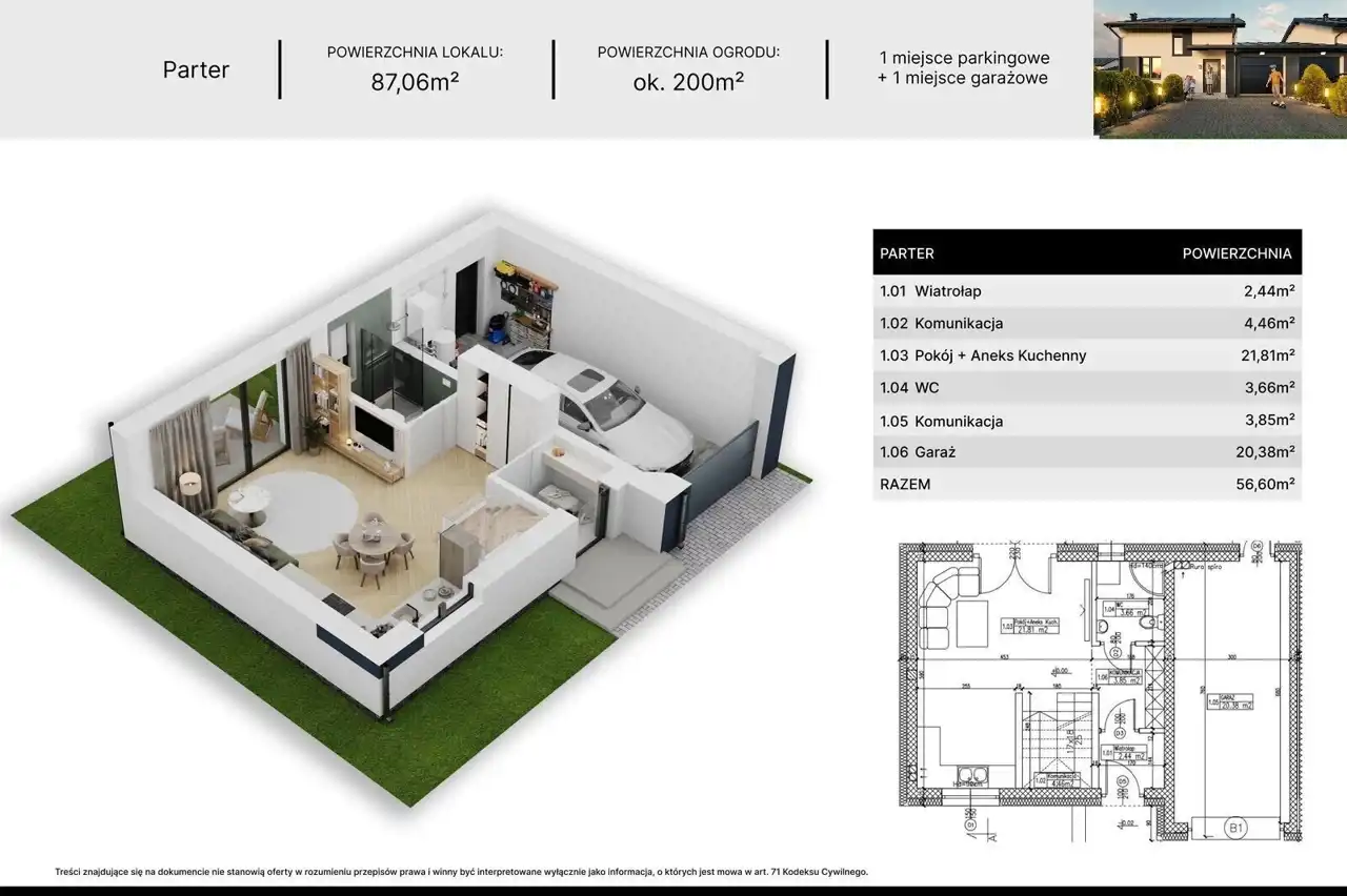 - Powierzchnia garażu: 20,38 m²