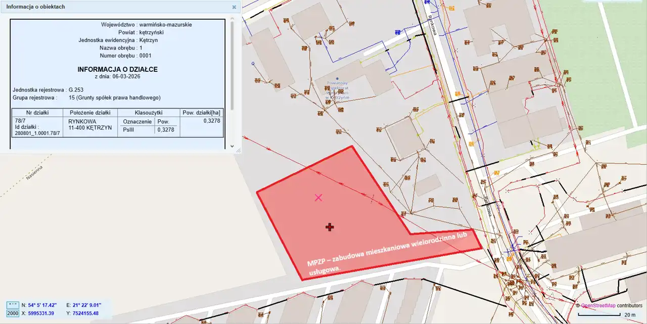Na sprzedaż działka o nr ewid. 78/7, obręb 1 o powierzchni 3278 m², położona przy ul. Rynkowej w Kętrzynie.