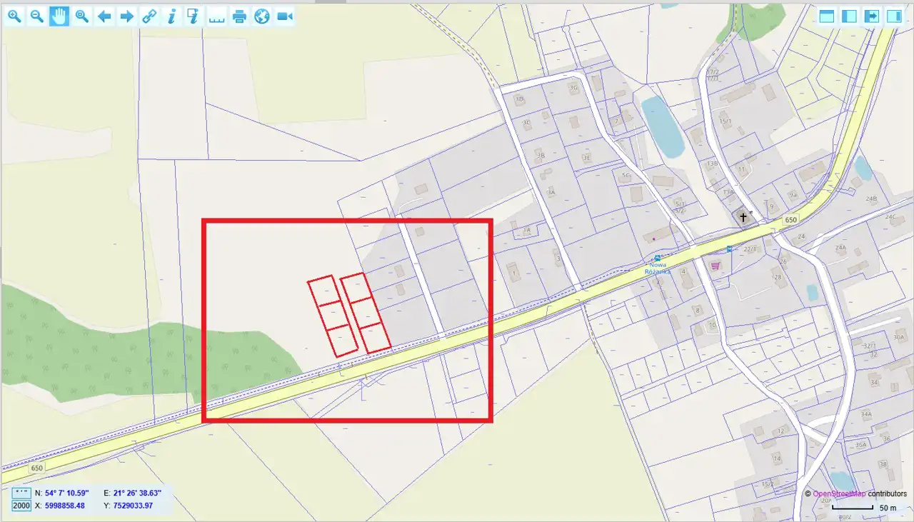 Na sprzedaż 1 z 6-ciu działek budowlanych przy drodze nr 650 w Nowej Różance.