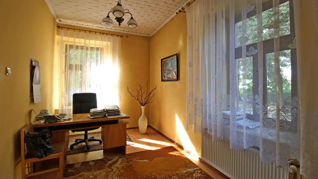 Budynek parterowy, niepodpiwniczony, wolnostojący kryty dachówką. Cześć pomieszczeń budynku po kapitalnym remoncie - tynki wewnętrzne, posadzki; część w trakcie remontu.