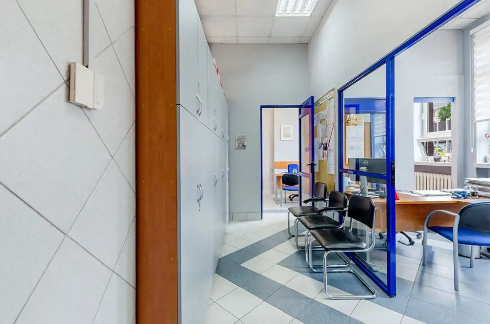 Na terenie mieści się murowany budynek biurowo-mieszkalny częściowo o 3 i 4 kondygnacjach wraz z piwnicą. Łączna powierzchnia użytkowa wynosi 1235,98 m2. Wewnątrz budynku znajdują się pomieszczenia biurowe w układzie gabinetowym oraz pomieszczenia socjalne, gospodarcze i techniczne. Ponadto w obiekcie na II piętrze zlokalizowany jest lokal mieszkalny o powierzchni użytkowej 61,35 m2. Składa się z 3 pokoi, kuchni, łazienki z WC oraz przedpokoju. Do lokalu przynależy piwnica o powierzchni 30,93 m2. W budynku znajdują się 2 klatki schodowe (jedna w części mieszkalnej, druga w części biurowej). Na terenie nieruchomości dostępne miejsca parkingowe, wjazd od ulicy Królickiego.