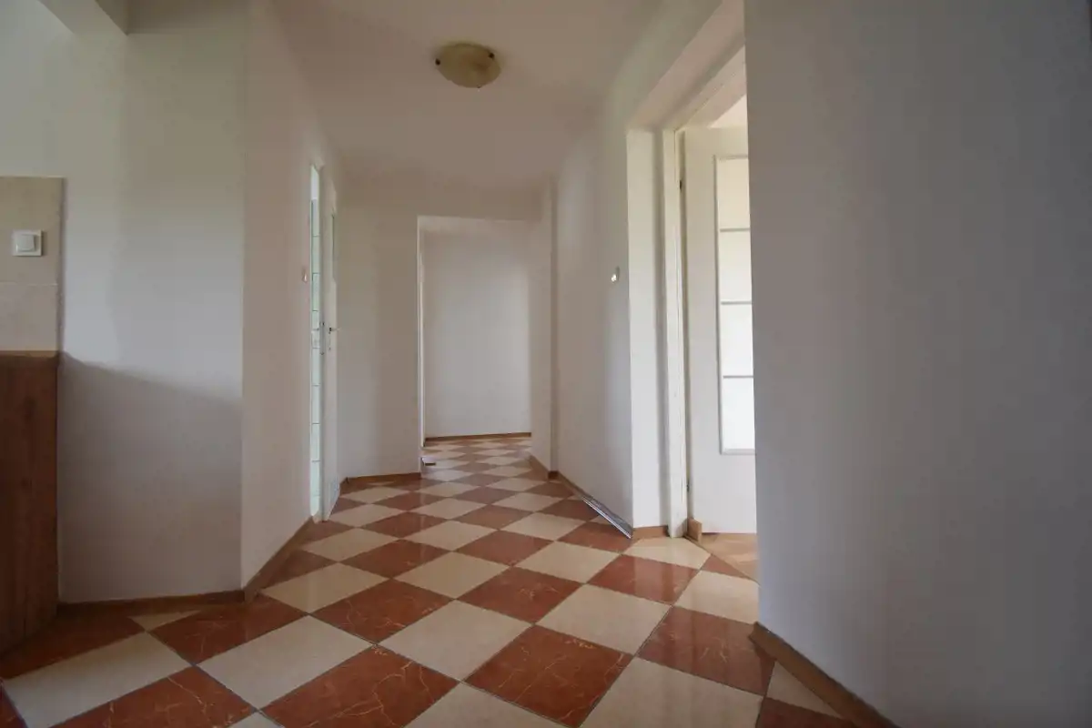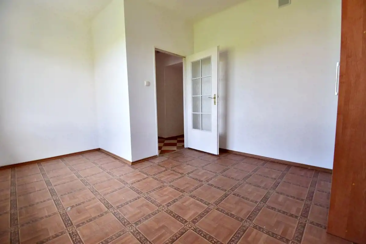 The house was built in the 1960s from brick, insulated with styrofoam, and covered with plaster. The roof is made of trapezoidal sheet metal. PVC windows. Heating is provided by a dual-function gas furnace and a solid fuel furnace installed in 2023. In 2023, the roof was also painted, and all interior walls were repainted. The house is located in the first row of buildings, with single-family houses in the neighborhood. The plot is rectangular, flat, and fenced. Access to the property is via a paved road. Plot dimensions: 20 (front) x 46.75 [m]. There are two detached garages on the plot.