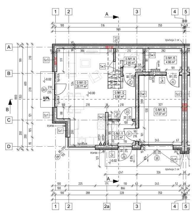 W całym domu zaplanowane ogrzewanie podłogowe.