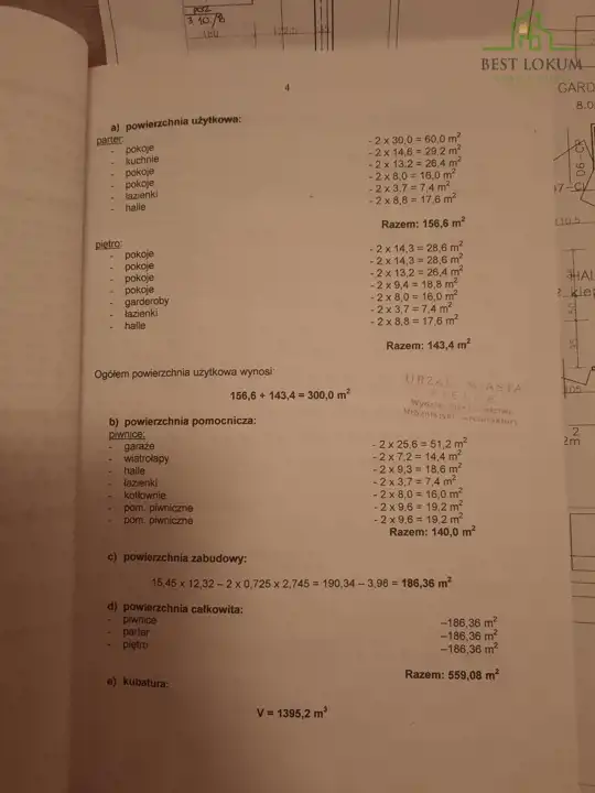 Bliźniak o powierzchni całkowitej 559 m², użytkowej 300 m² . Bliźniak jest położony na działce o łącznej powierzchni 826 m² .