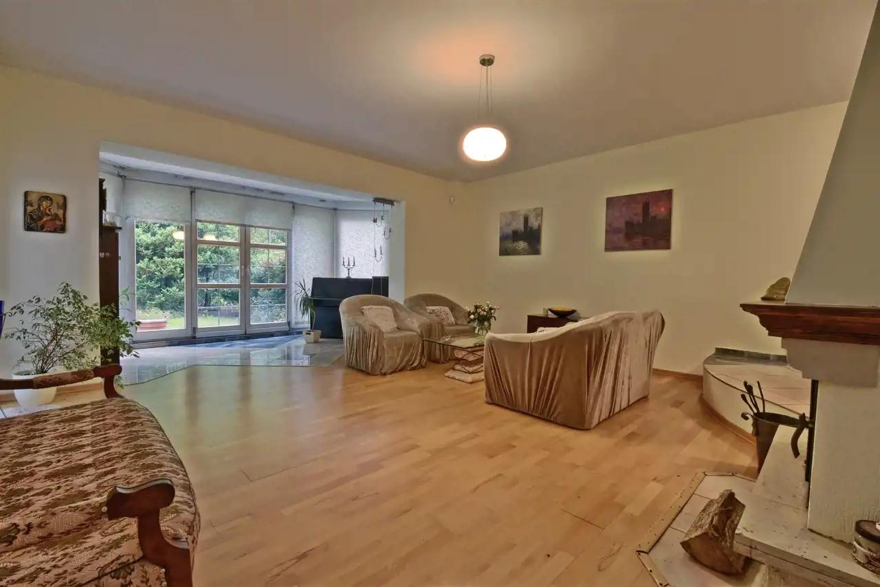 Flooring: parquet in rooms and corridors; porcelain tiles in bathrooms, kitchen and basement. Wooden window joinery in good condition. Anti-burglary roller shutters installed.