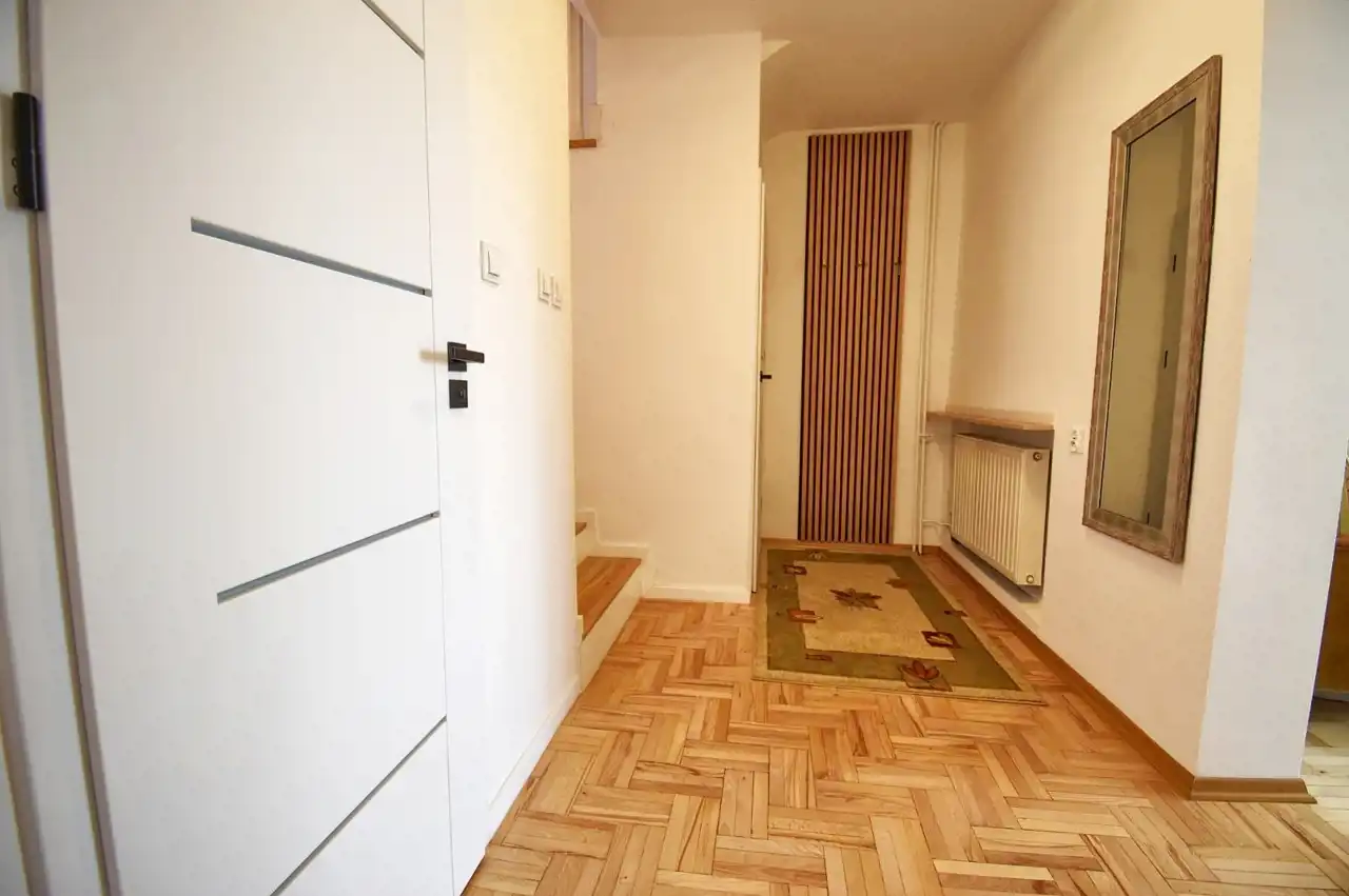 Partial renovation includes: replacement of windows and internal doors with frames, wall smoothing, renovation of one bathroom, partial kitchen refurbishment, new wooden staircase finishing