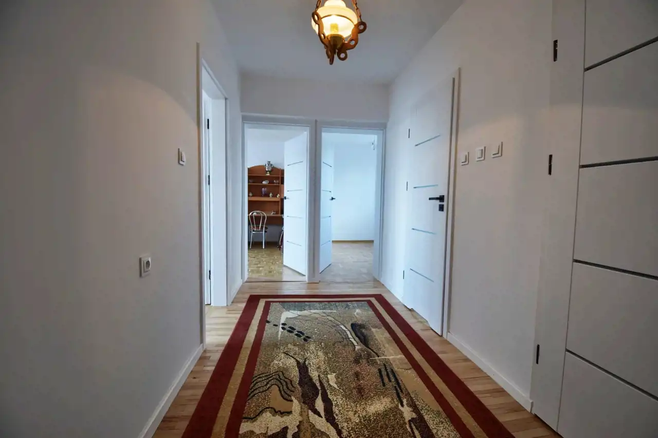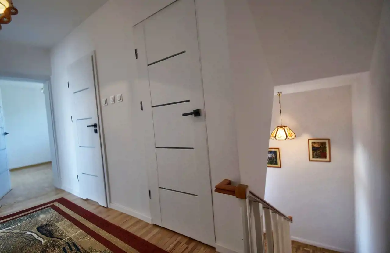 Częściowy remont obejmujący: wymianę okien, drzwi wewnętrznych z ościeżnicami, położenie gładzi, remont jednej z łazienek, częściowe odnowienie kuchni, nowe drewniane wykończenie schodów