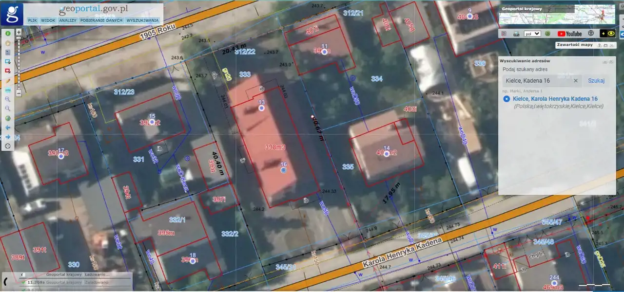For sale: a semi-detached house (both halves) with a total area of approx. 506.8 m² and a usable area of 397.4 m², in need of refreshing, situated on a fenced plot of 811 m². The property is located in Kielce, in the Białogon district – a quiet area surrounded by single-family houses, with convenient access via an asphalt road. The location offers easy and quick access to the city center.