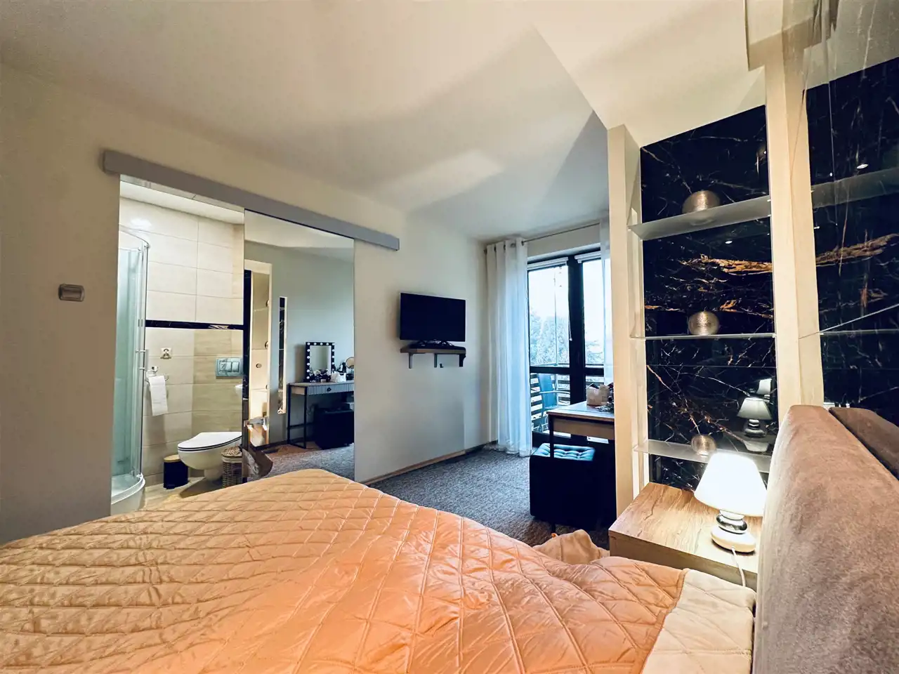 - sypialnia z balkonem i prywatną łazienką,