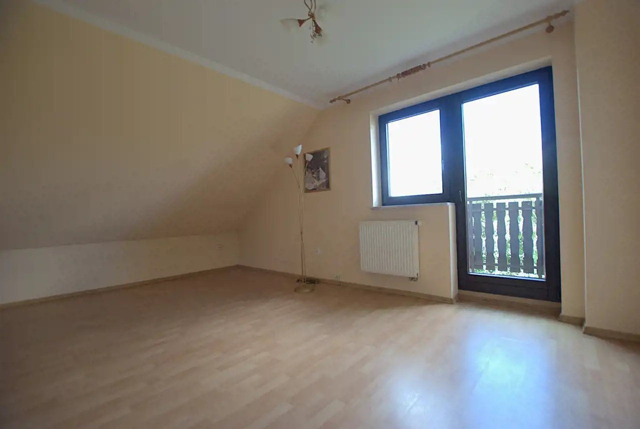 II poziom - łazienka, sypialnia z balkonem, jeden duży pokój z możliwością podzielenia na 2 sypialnie, sauna