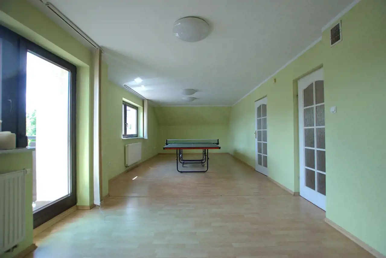 Piwnica: garaż, kotłownia, WC, oraz dodatkowe 2 pomieszczenia gospodarcze. Wysokość piwnicy około 2,2 m, pomieszczenia z oknami.