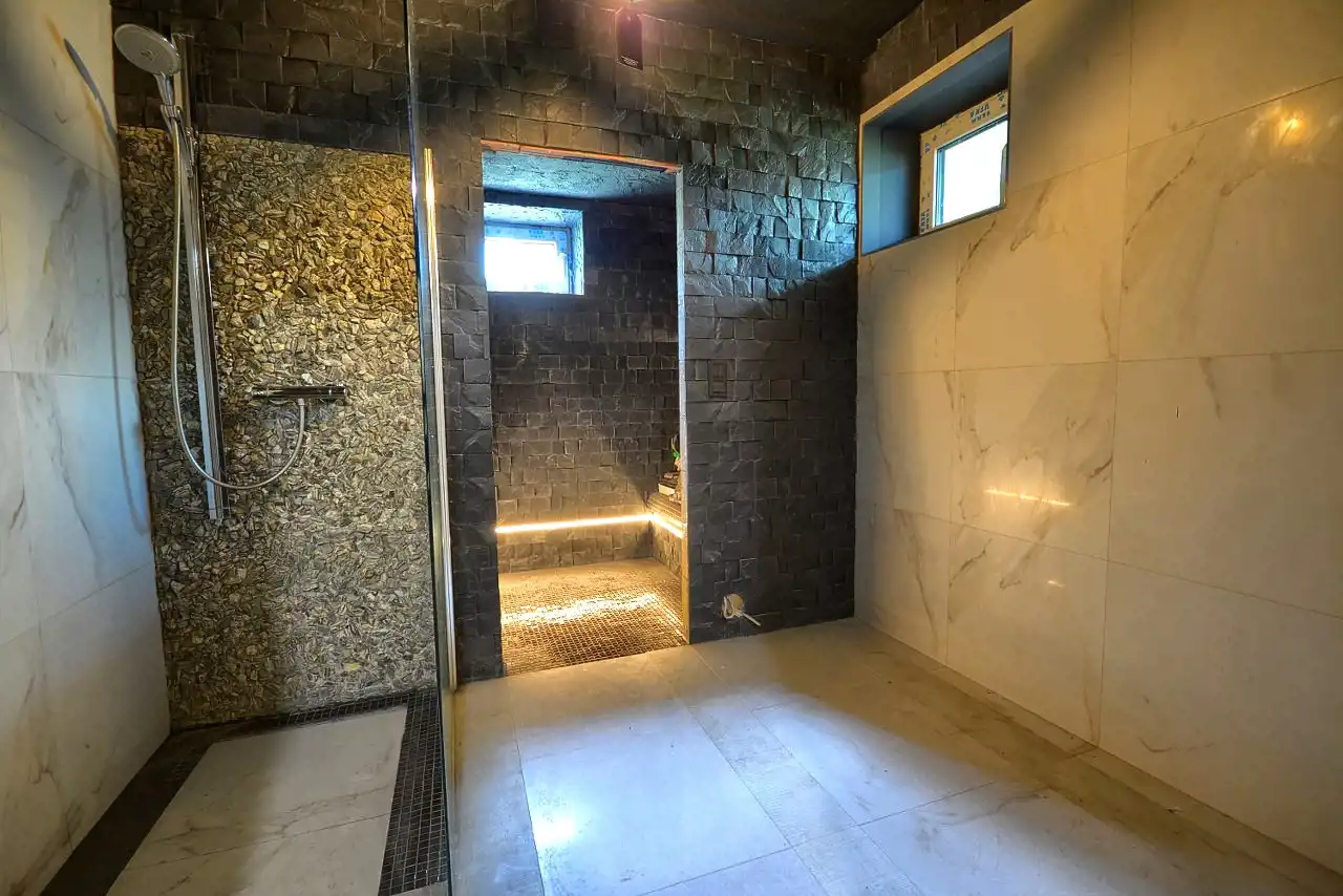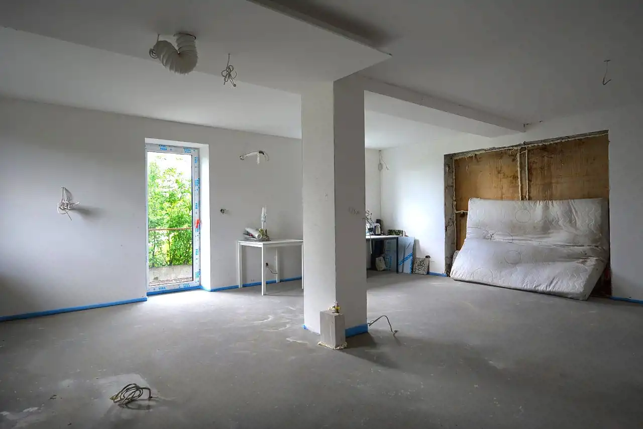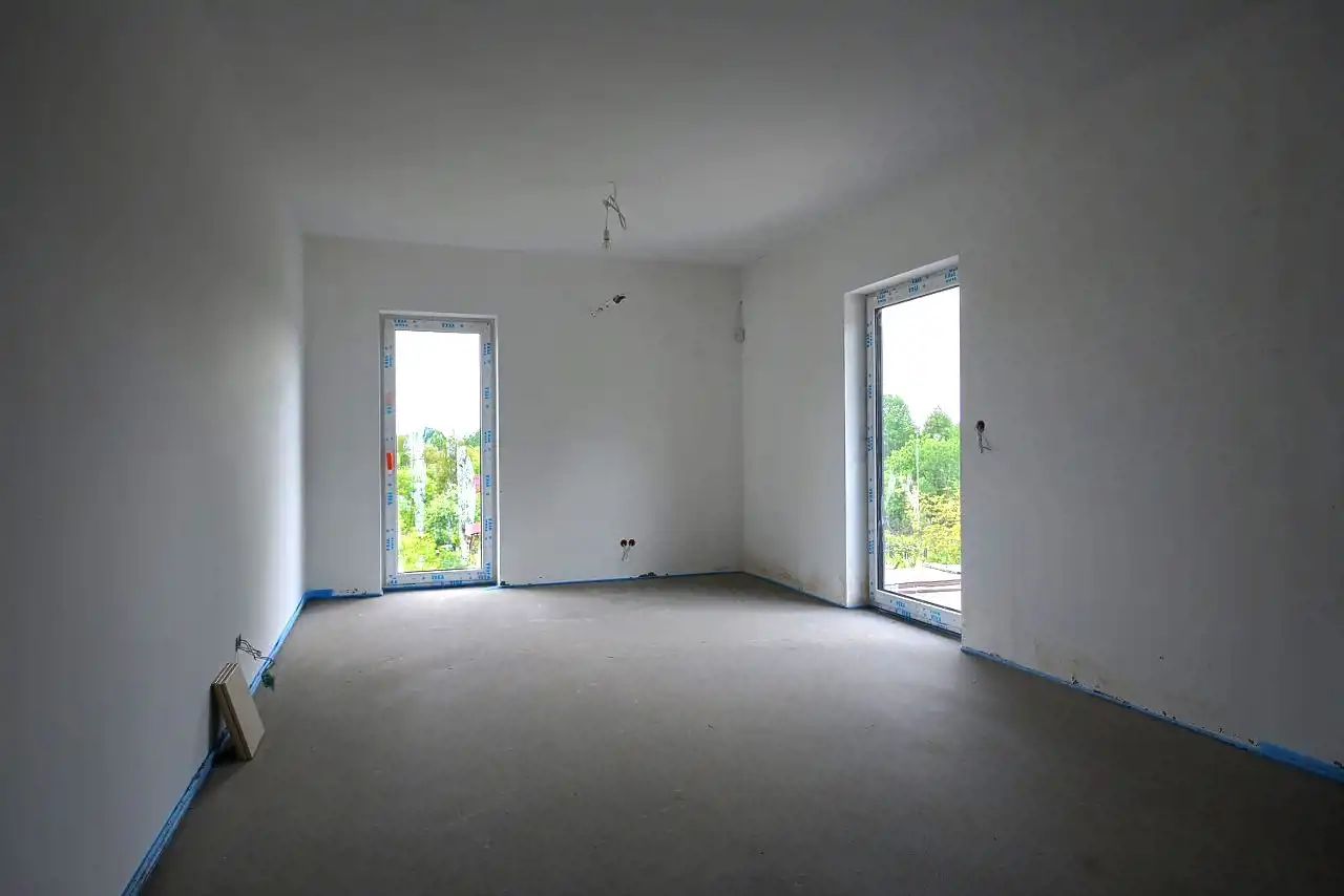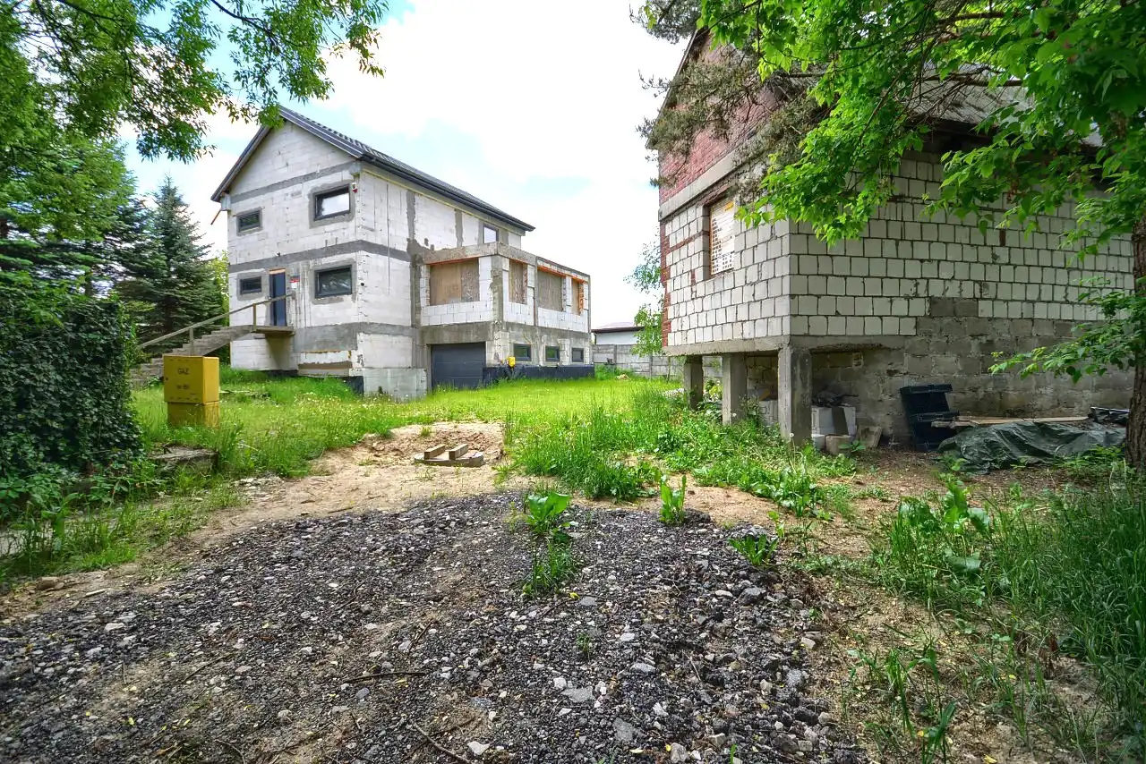 The building is in developer condition, with the basement level finished. Electrical and plumbing installations have been completed, as well as underfloor heating. The house was built based on an individual design using H+H blocks, covered with metal roofing tiles, and equipped with a dual-function gas boiler for heating. The house offers significant layout and design potential for the new owner.